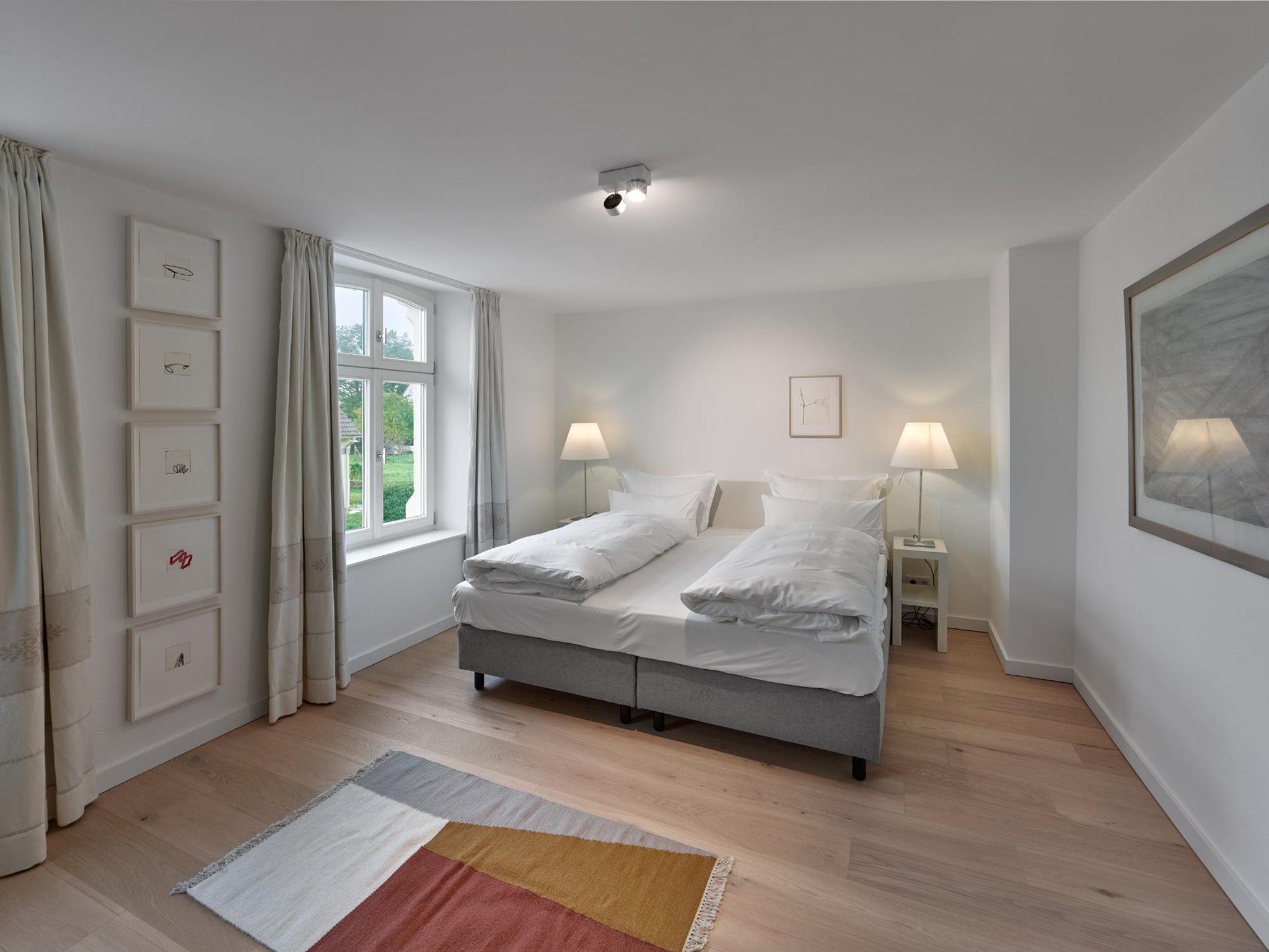 Einkuscheln im historischen Dachstuhl des Gutshauses – die Zimmer Hörecker und Sonnenberg erwarten Sie mit modernem Interieur, hochwertigen, modernen Bädern und Klimaanlage.