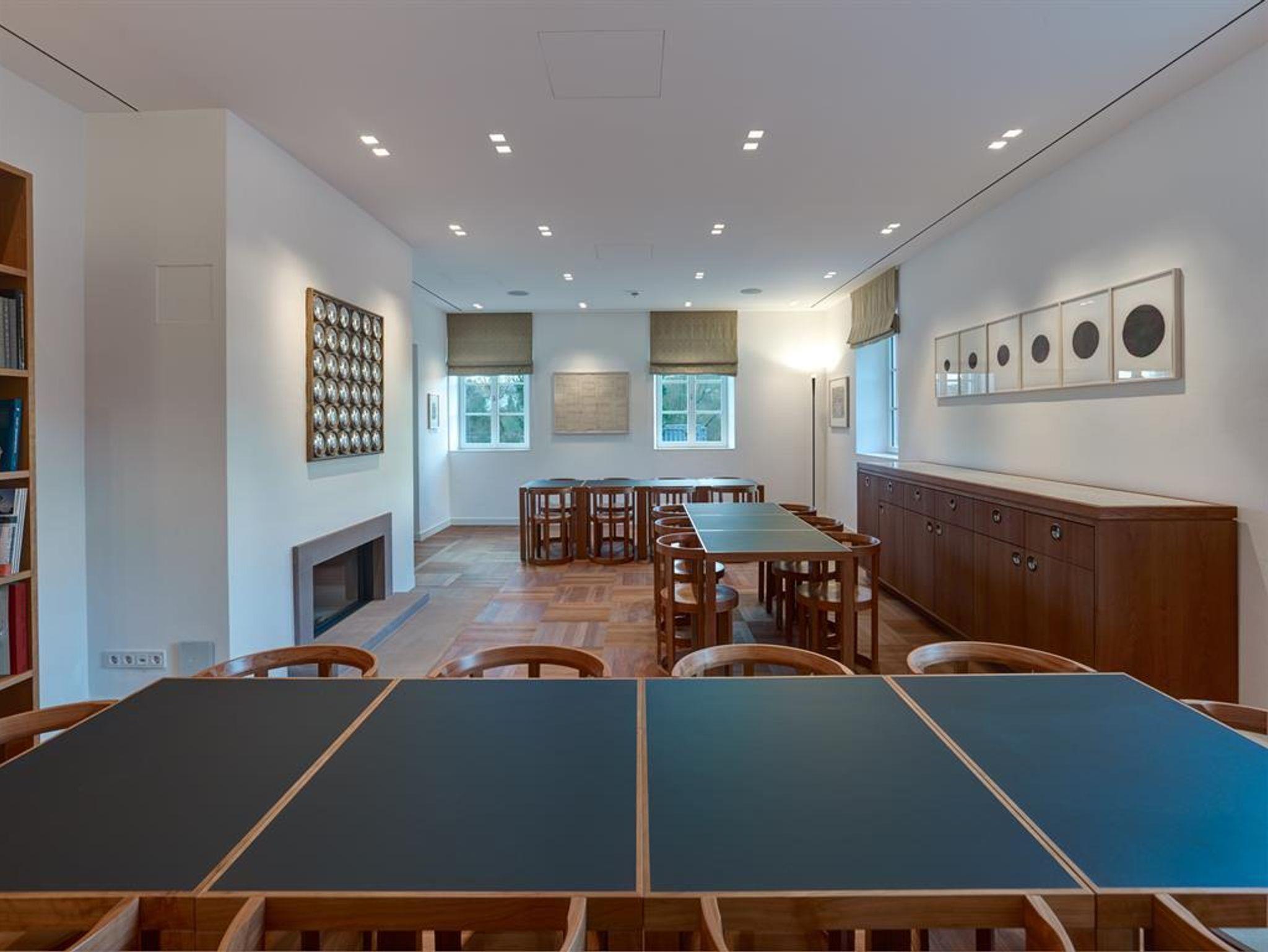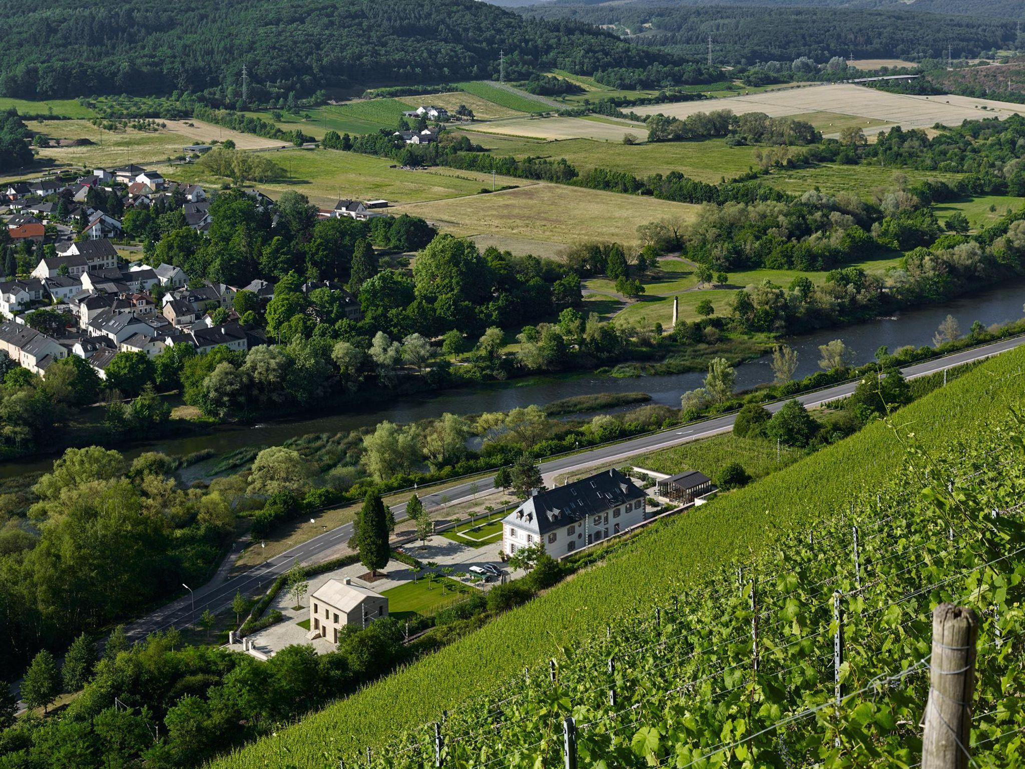Das Zimmer Kupp in der modernen, von Max Dudler entworfenen Remise, bekam seinen Namen durch gleich zwei bekannte Weinlagen, die Wiltinger Kupp und die Ayler Kupp. Erstere kann man aus dem östlichen Fenster sehen, von der zweiten Lage werden Parzellen durch das Weingut Cantzheim bewirtschaftet.