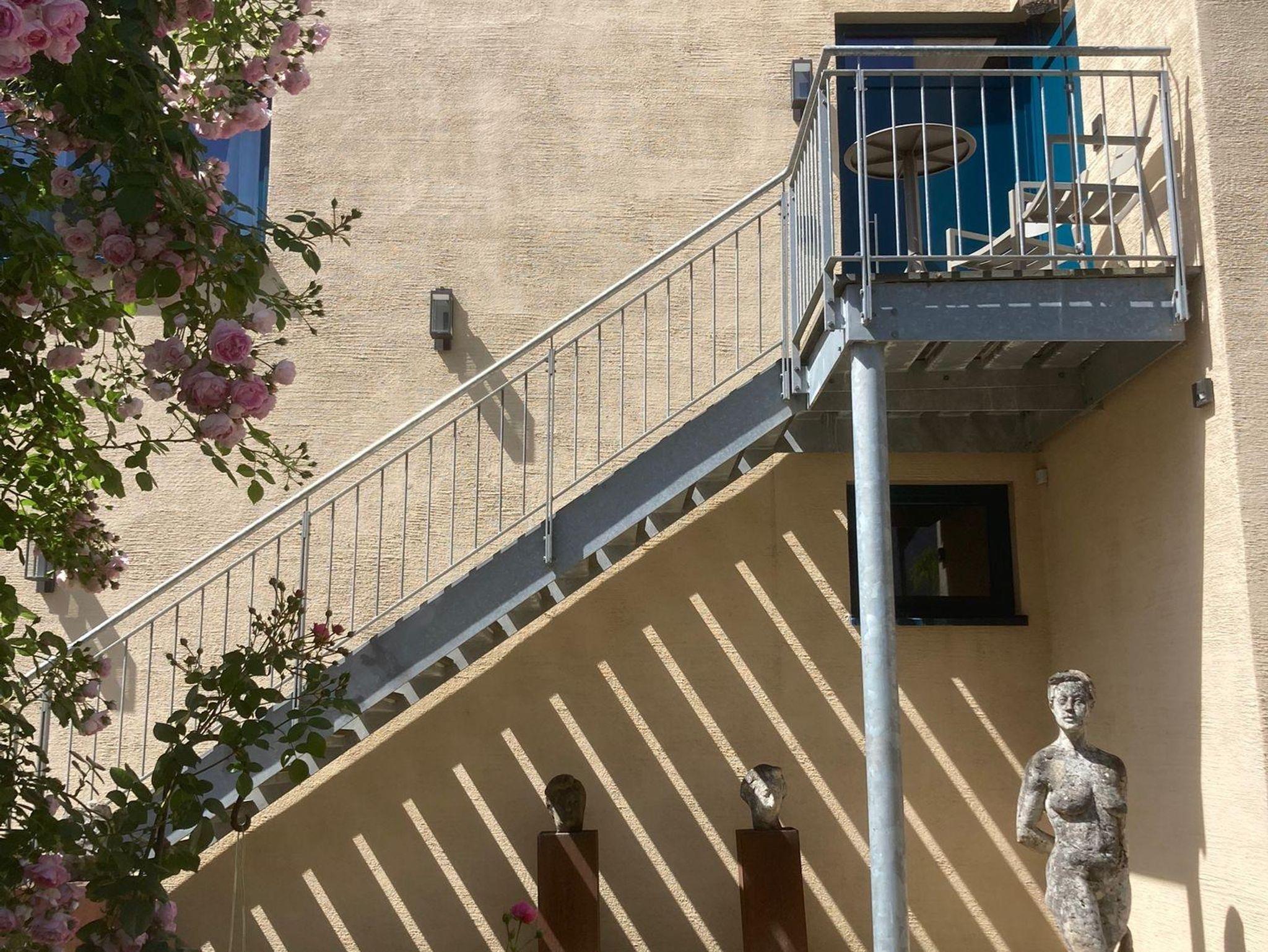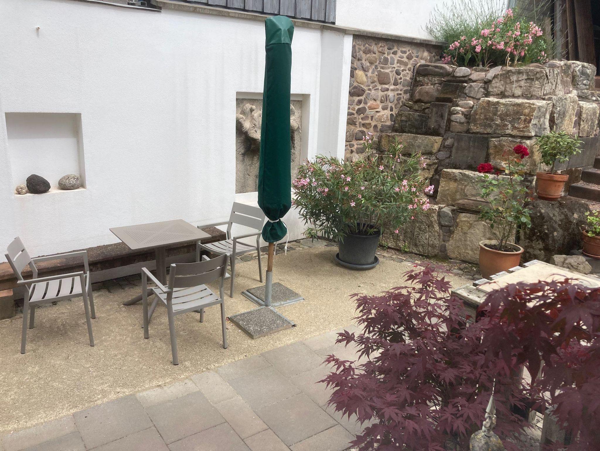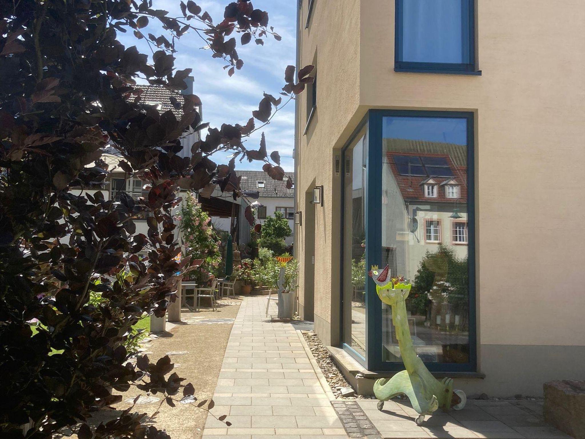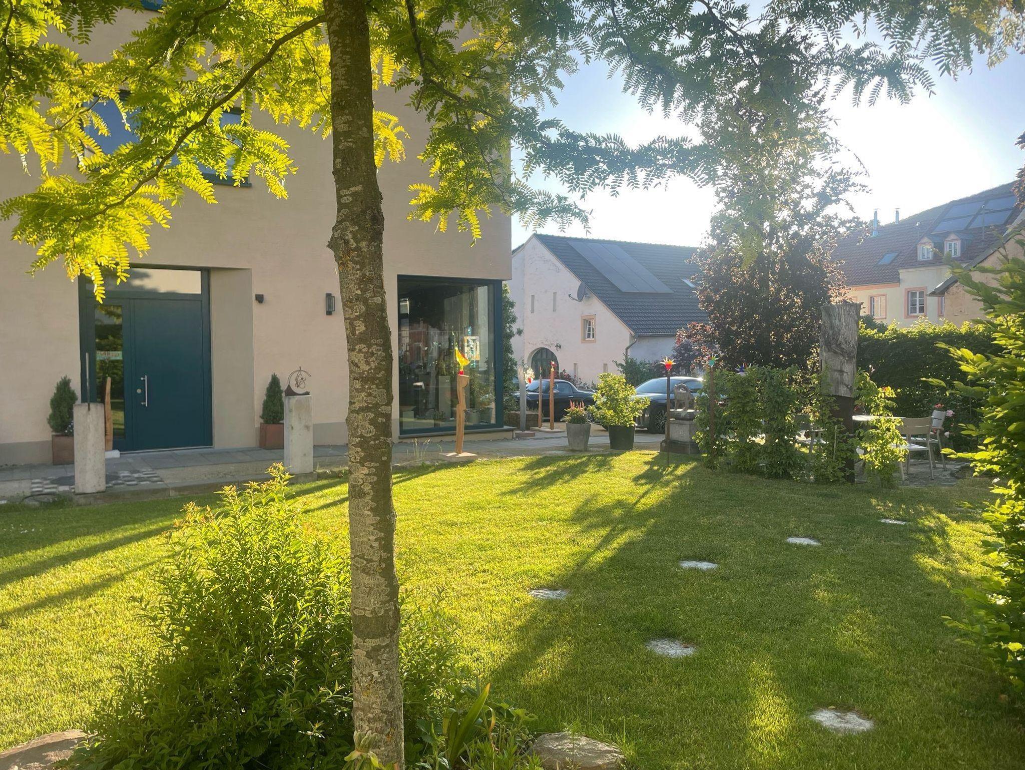 Zu jeder Wohnung gehört ein Parkplatz, direkt vor dem Haus. Der große, ruhig gelegene Garten, mit vielen gemütlichen Sitzmöglichkeiten und dem geschützt gelegenen Innenhof lädt ein zum Verweilen und Entspannen ein. Der Bahnhof ist fußläufig in 5 Gehminuten zu erreichen. Auf Wunsch bieten wir verschiedene künstlerische Kurse in den Bereichen Zeichnen, Glas, Holz sowie Stein auf Anfrage (ab 5 Teilnehmern) an.