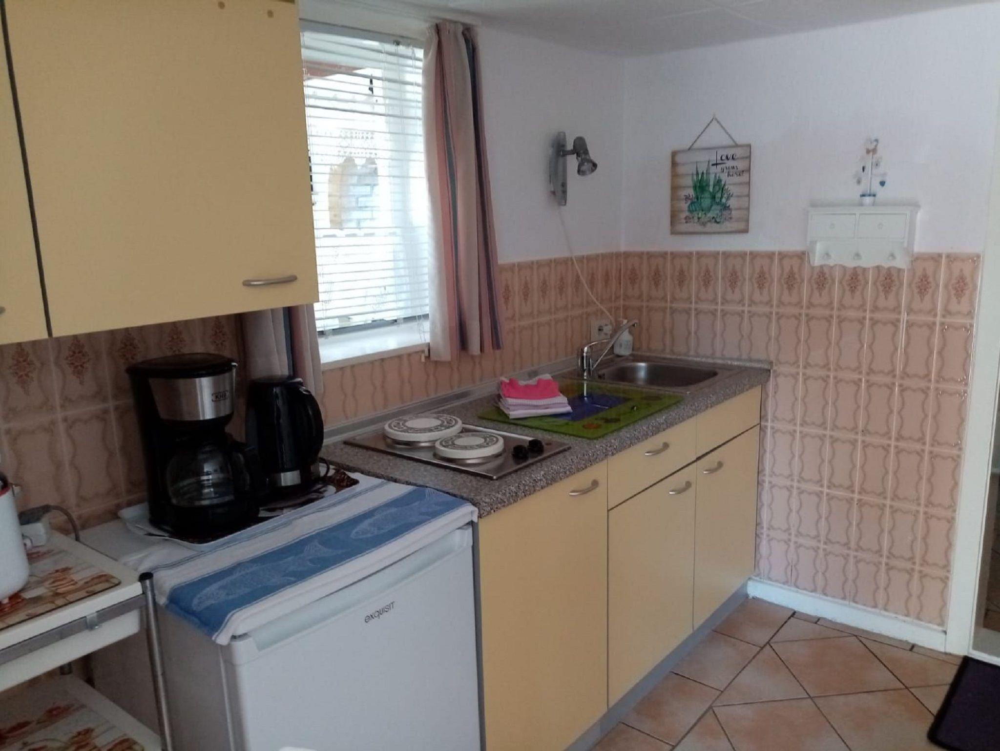 Ferienwohnung 31 für 2 Personen. Die Ferienwohnung ist 45m² groß und hat drei Räume: Schlafraum mit Doppelbett 1,60 x 2,00m, Küche, Badezimmer mit Dusche und separatem WC.