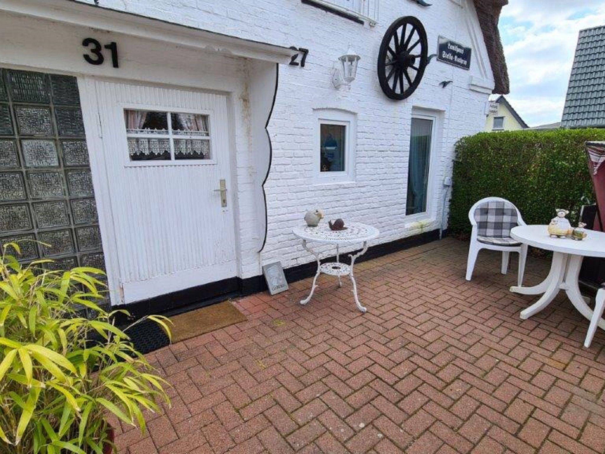 Die Ferienwohnung befindet im EG mit einer eigenen, großzügiggen möblierten Terrasse, zu der auch ein Strandkorb gehört.