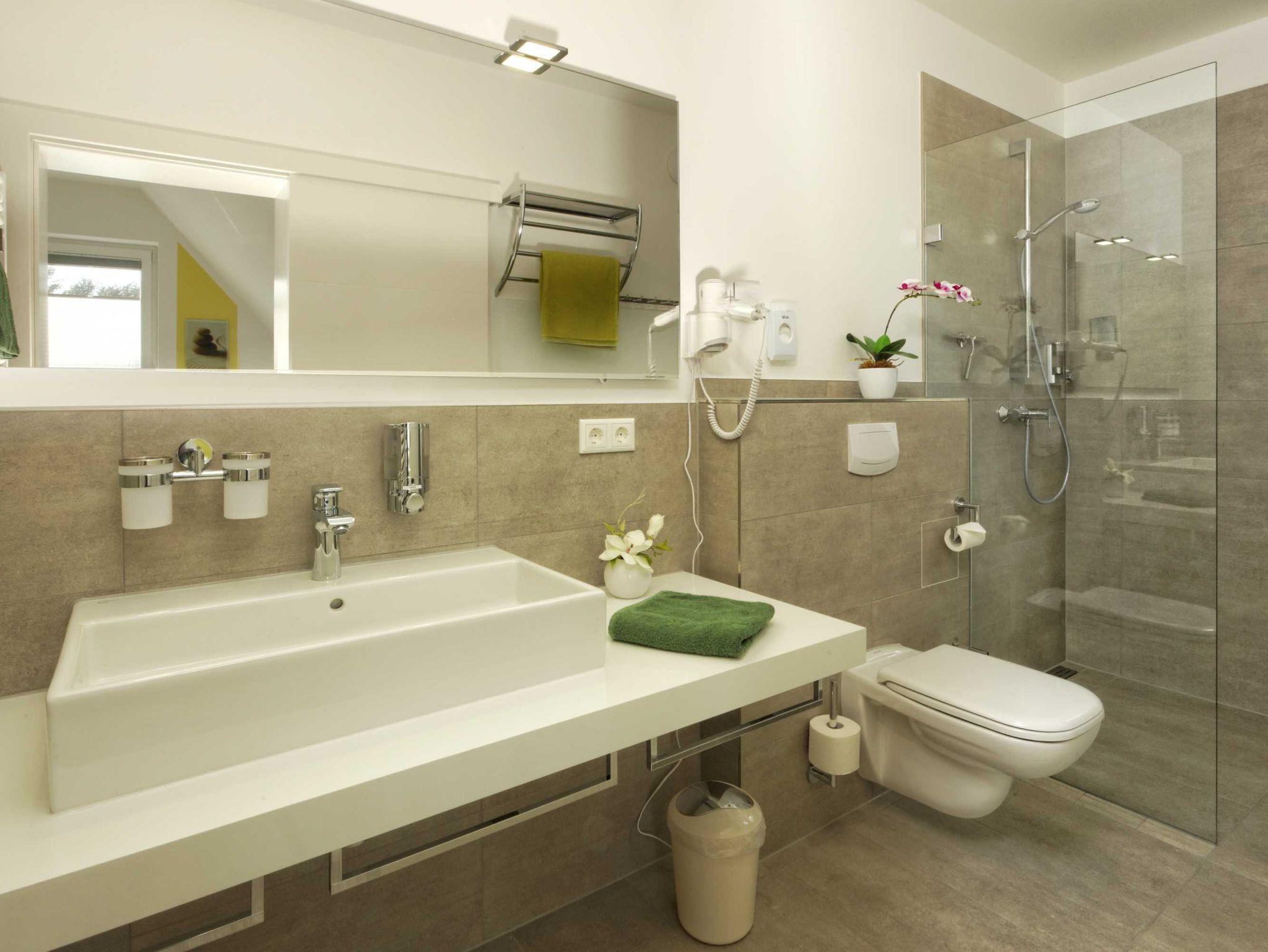 • zu jedem Schlafraum gehört ein Duschbad mit bodentiefer Dusche, WC & Föhn
