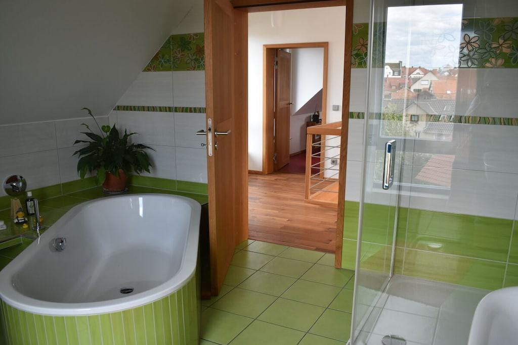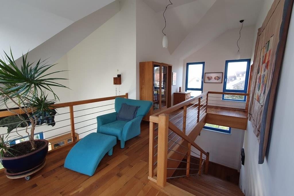 Im Dachgeschoss unseres Einfamilienhauses bewohnen sie eine nach ökologischen Gesichtspunkten eingerichtete Ferienwohnung. Massivholzmöbel aus der eigenen Tischlerei sowie das gesamte ökologische Konzept des Hauses tragen zu einem hohen Wohlfühlfaktor bei.