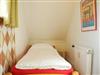 Das erste Schlafzimmer ist mit einem Einzelbett ausgestattet.