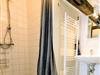 Bad & Wellness: Modernes Badezimmer mit großzügiger Walk-in-Dusche und WC. Ein separater Flur dient als eleganter An- und Umkleidebereich.