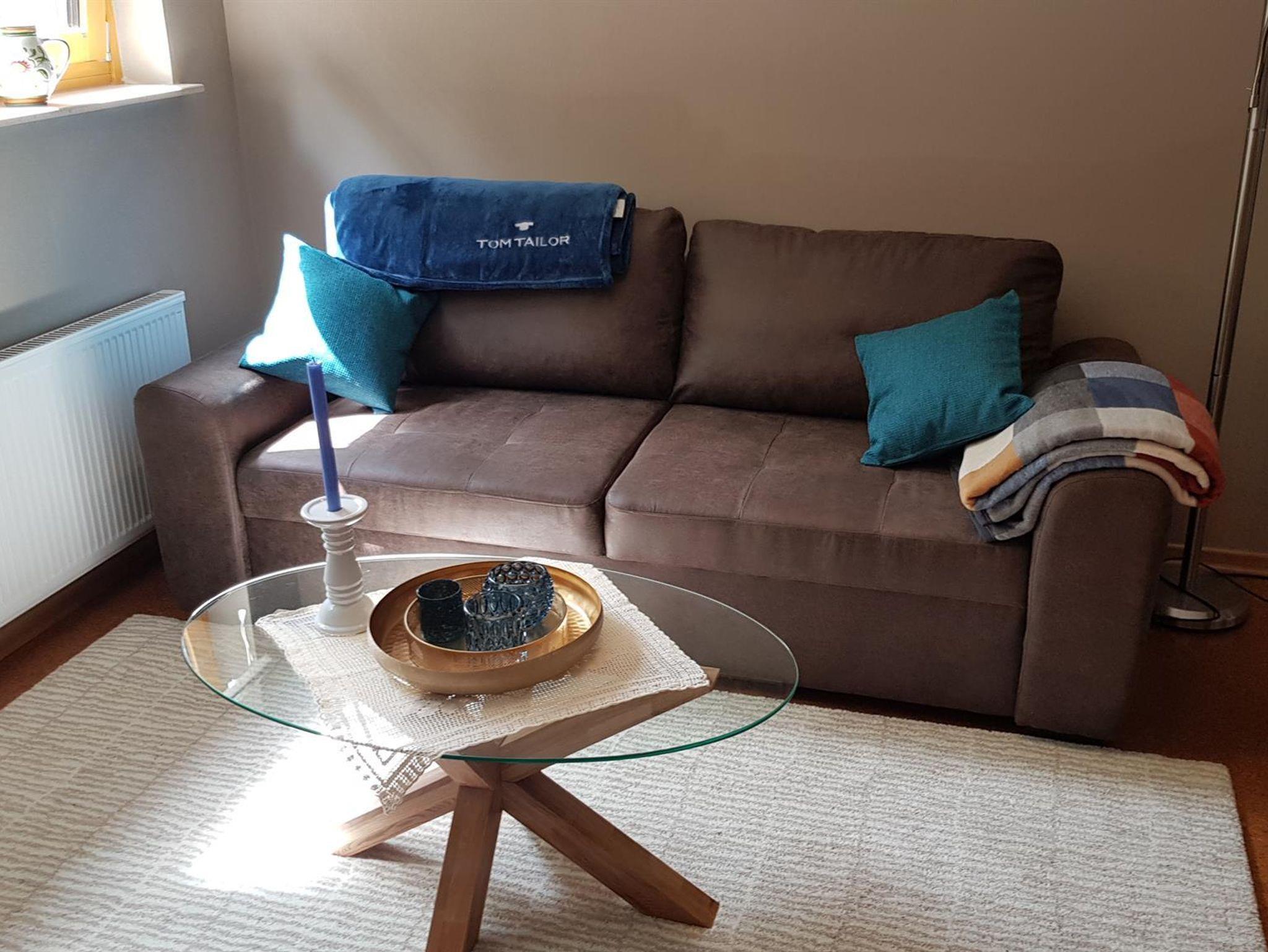 Unsere Ferienwohnung liegt sehr ruhig und besteht aus Wohn-/Esszimmer, Schlafzimmer Küche und Bad. Sie befindet sich im Untergeschoss (15 Stufen), hat aber normale Fenster.