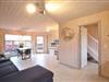geräumiger Wohn-Essraum mit Ausgang zur Terrasse, Einbauküche mit Geschirrspülmaschine, Kühlschrank mit Gefrierfach, Kaffeemaschine und Essbereich