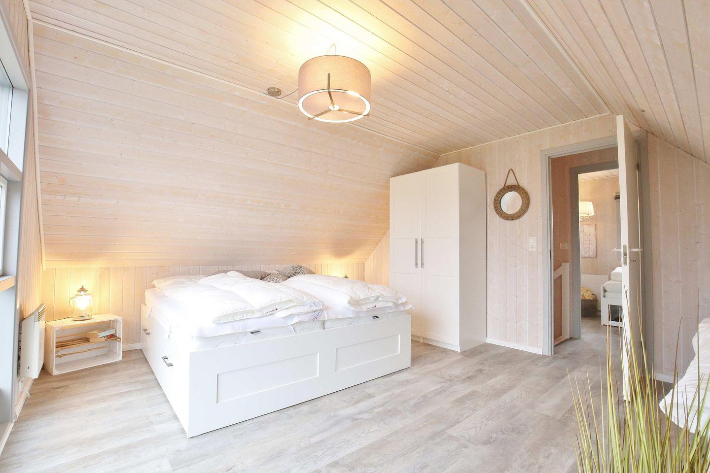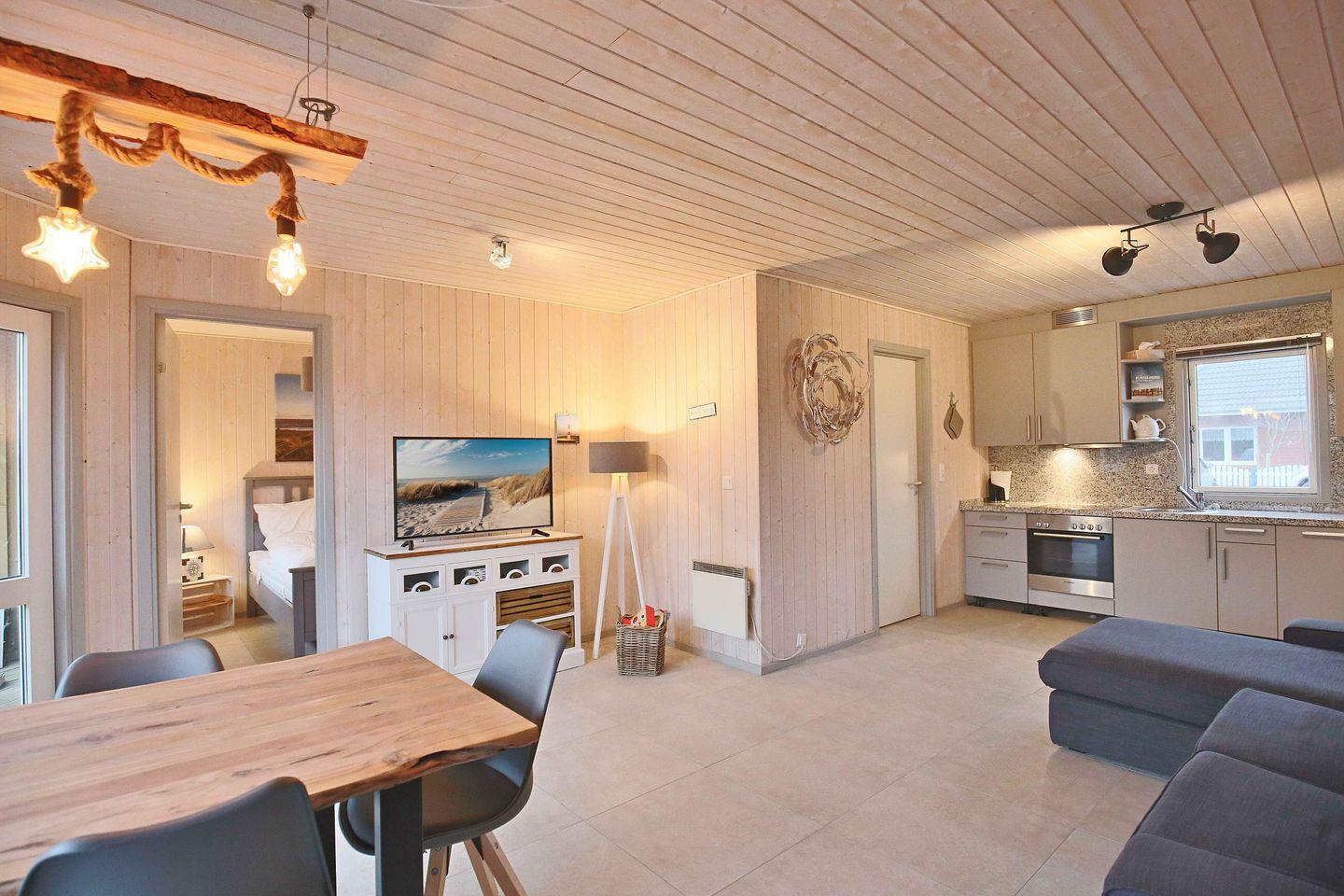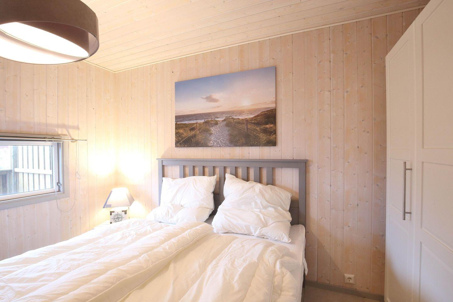 Das Holzhaus bietet mit 3 Schlafzimmern und einem großzügigen Wohn- und Essraum genügend Freiraum für 6 Personen. Die Einrichtung im modernen Landhausstil, Kamin und möblierter Terrasse runden das Urlaubsflair ab. Für die kleinen Gäste ist in der Straße ein Spielplatz vorhanden.