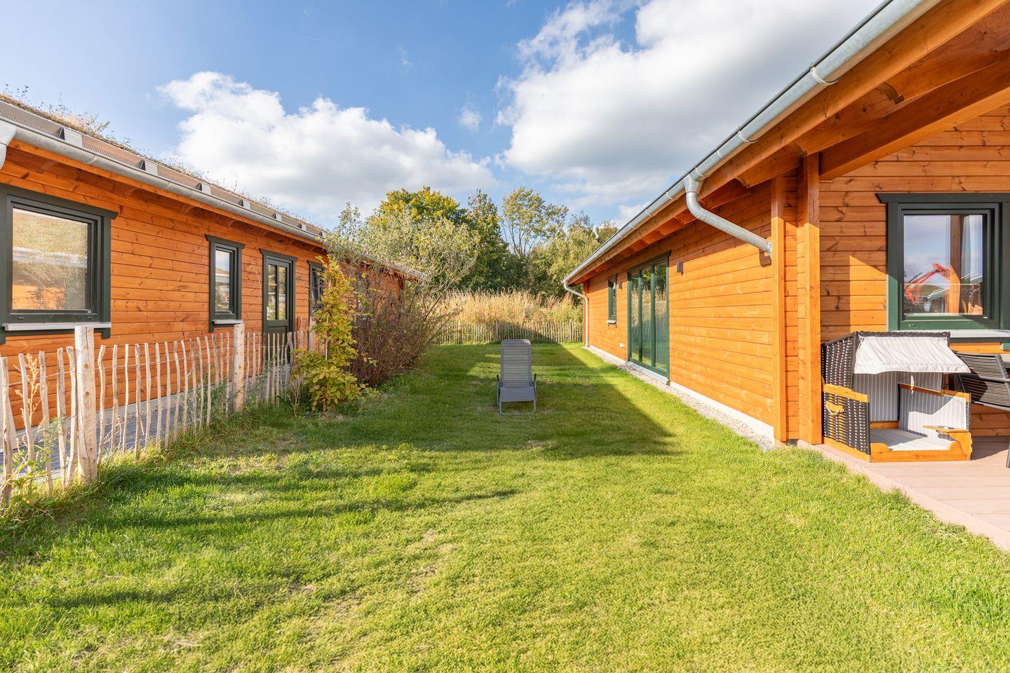 Gartenmöbel, ein Kugel-Holzkohlegrill, ein Strandkorb und ein Windschutz laden zu entspannten Stunden auf der Terrasse ein. Für Wellnessliebhaber steht eine eigene Sauna zur Verfügung – ideal, um nach einem aktiven Tag zur Ruhe zu kommen.
