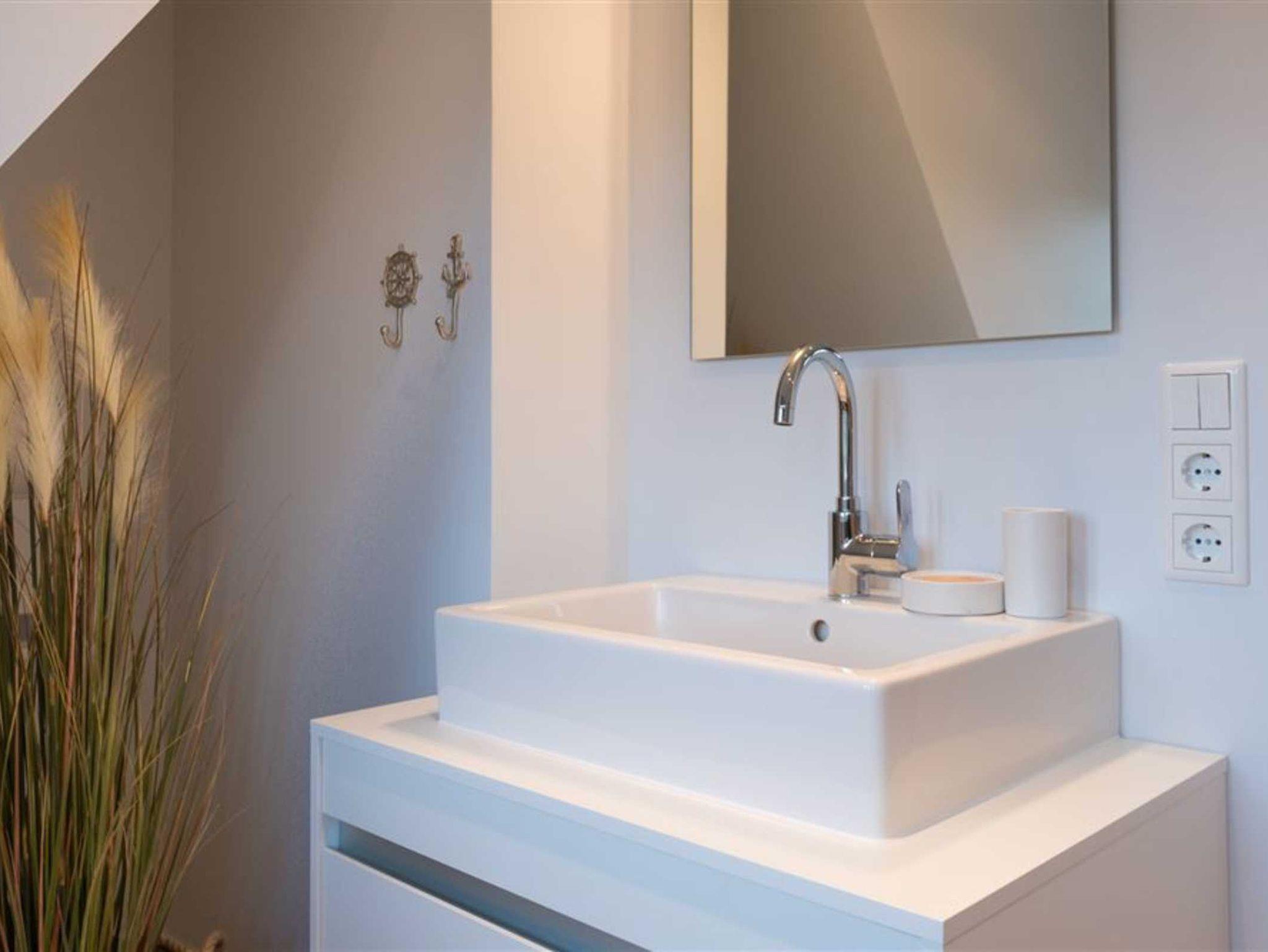 Die Farbauswahl entspricht dem heutigen Zeitgeist und ist insgesamt sehr harmonisch gehalten. Der Wohnbereich, die Küchenzeile und das Badezimmer befinden sich im Obergeschoss. Das Schlafzimmer mit gemütlichem Doppelbett befindet sich im Dachgeschoss.