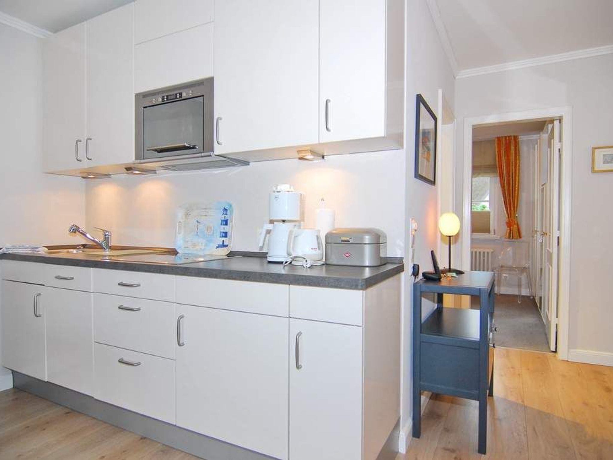 In der hundefreundlichen Wohnung stehen Ihnen neben einem geräumigen Wohnzimmer mit Sitz- und Essgruppe eine offene Küchenzeile mit Geschirrspüler und Mikrowelle zur Verfügung. Vom Wohnraum aus gelangen Sie auf die möblierte Westterrasse mit Strandkorb. Das separate Schlafzimmer bietet ein Doppelbett, Einbauschrank und TV. Ein geräumiges Duschbad / WC und eine praktische Abseite im Flur für Ihr Gepäck runden das Angebot ab.