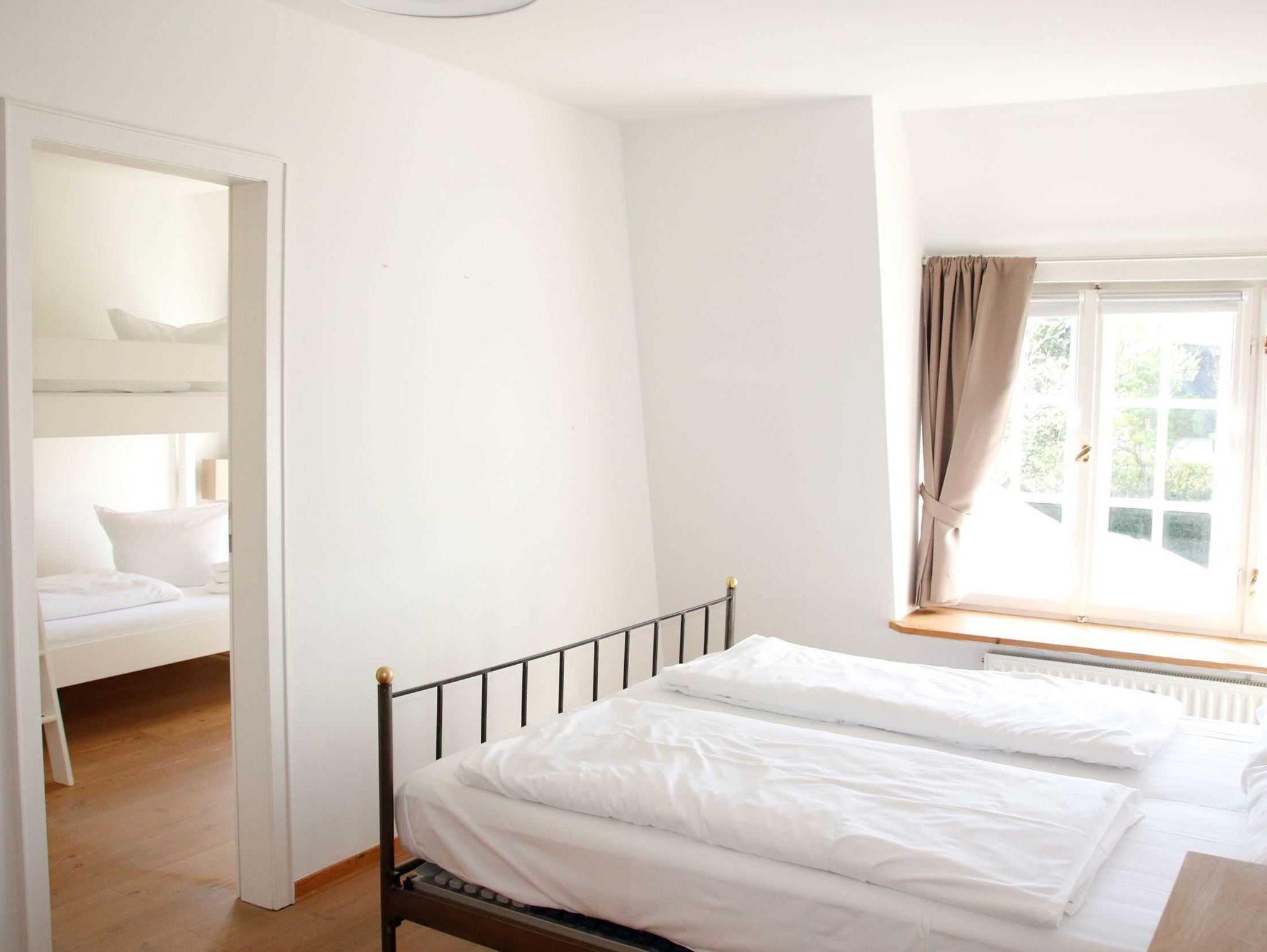 (Um in das Schlafzimmer mit dem Etagenbett zu gelangen, muss durch das Schlafzimmer mit dem Doppelbett durchgegangen werden. )