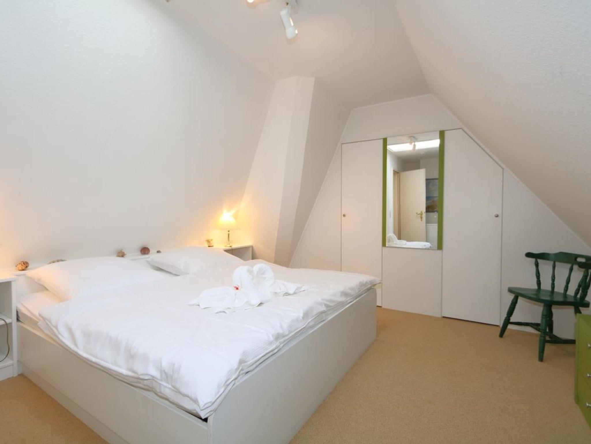 Ein Schlafzimmer im 2 Obergeschoß mit 1 großem Doppelbett, großer Kleiderschrank.