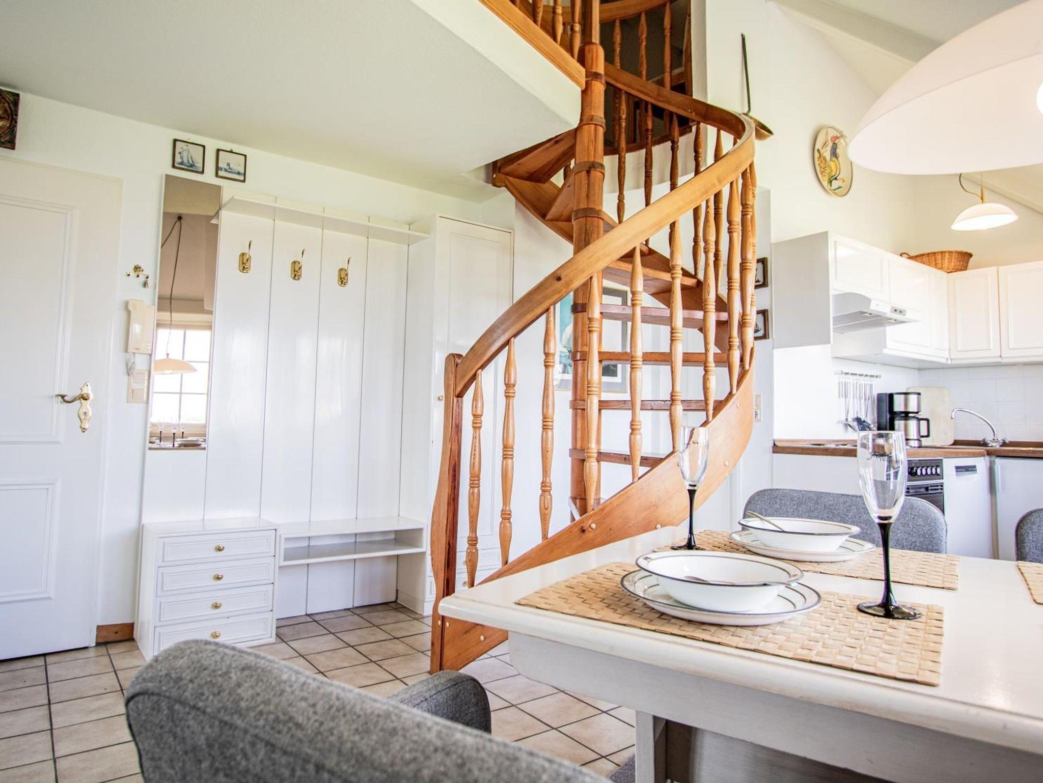 Dieses 2-Zimmer Appartement ist für Sylt-Liebhaber. Das Reetdachhaus liegt in Keitum und aus der Wohnung gibt es den schönsten Blick über das Wattenmeer. Im Wohnbereich befindet sich ein neues Sofa Mit Sessel sowie ein Essbereich mit integrierter Küchenzeile. Auf der gleichen Ebene befindet sich auch das Duschbad, mit WC und Dusche. Über die Wendeltreppe gelangt man ins Schlafzimmer mit einem Doppelbett (180x200cm) und Kleiderschrank.