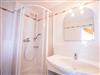 WC, Dusche, Waschbecken, Spiegel und ausreichend Handtücher und Vorleger.