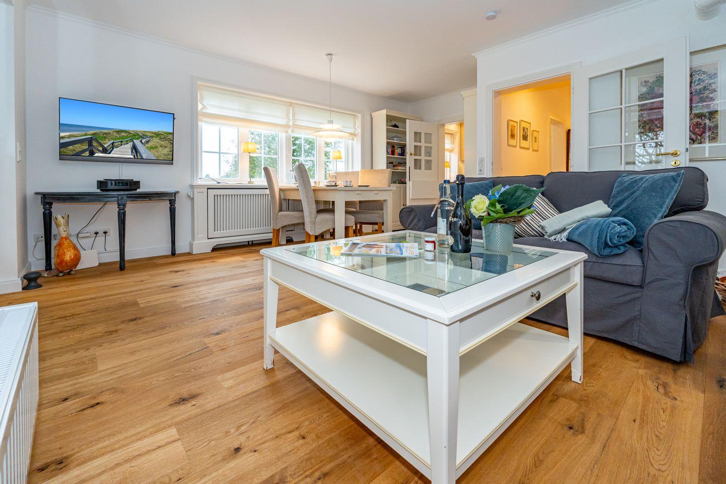 Die Ferienhaushälfte ist unter Reet gelegen und verfügt über eine gemütliche und hochwertige Ausstattung, sowie eine Terrasse mit Garten. Keitum ist ein charmantes, idyllisches Dorf, das mit seinem historischen Flair begeistert.