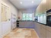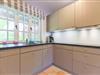 Auch die Küche schafft mühelos den Spagat zwischen Trend und Tradition mit einer sehr reduzierten Einrichtung und einer hochmodernen Ausstattung (Hochbaubackofen mit Mikrowelle, Nespressomaschine). Allerdings wurde dabei nicht auf durchgestylte, grifflose Hochglanzfronten, sondern auf sehr subtile Weise das Country-Thema mit natürlichen Materialien und klassischeren Details beibehalten.