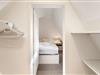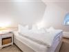 Auf der ersten Ebene befindet sich ein Schlafzimmer mit zwei Einzelbetten (90x200 cm) und einer großzügigen Raumhöhe. Über eine Treppe erreichen Sie das zweite Schlafzimmer im Dachgeschoss, das mit einem Doppelbett (2x 90x200 cm) ausgestattet ist. Hier befindet sich eine großzügige Abseite, die als Stauraum für Kleidung und Koffer dient.