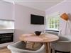 Die Farben der Inneneinrichtung verkörpern Achtsamkeit, Fu¨rsorge und Naturverbundenheit. Die nudefarbenen Wände bieten den perfekten Rahmen fu¨r minimalistisches, zeitloses Design wie z.B. fu¨r die 1968 vom dänischen Designer Verner Panton entworfene Tischleuchte »Flowerpot« und die von Broberg & Ridderståle fu¨r das Interior-Label Muuto designte filigrane »Leaf LED« Tischleuchte. Leben im Ferien Domizil »Du¨nensand« verspricht Wohnen in luftigen Räumen mit zwei Schlafräumen und zwei Bädern. Es bietet den perfekten Rahmen fu¨r ein gemu¨tliches Miteinander von Familie und Freunden. Der Wohn- und Essbereich ist mit einer modernen, kompakten Ku¨chenzeile ausgestattet.