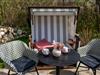 Im Garten steht ein Strandkorb sowie Gartenmöbel zur Verfügung (Ostausrichtung; April - Oktober).