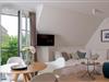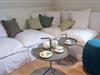 Das nicht erklärbare dänisch-behagliche »Hygge«-Gefühl kommt schon beim Eintritt auf, elegantes, modernes und warmes Interieur lässt eine harmonische, herrlich entspannte Atmosphäre entstehen. Unterschiedliche Farben grenzen einzelne Wohnzonen und Räume voneinander ab. Herzstück bildet der lichtdurchflutete Wohn- und Essbereich mit Sitzinsel, angrenzender südausgerichteter Loggia und einer offenen, voll ausgestatteten Küchenzeile. Von dem Wohnbereich mit angrenzendem gemütlichen Schlafzimmer und modernem Bad führt eine Innentreppe zu einem weiteren offenen Raum im Spitzgiebel – mit Weitblick bis zu den Dünen Westerlands.