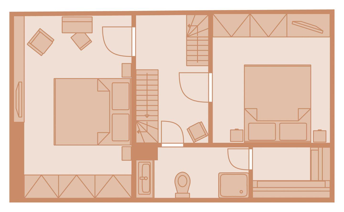 Obergeschoss: 2 Doppelzimmer mit TV; 1 Badezimmer mit Dusche, Sauna und WC