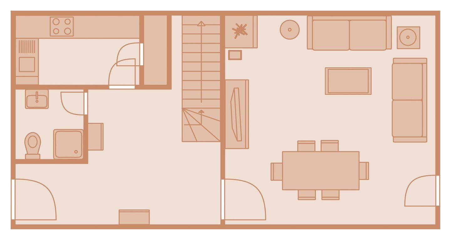 Das Ferien Domizil im Lörkiwai 7 (ca. 110 m²) geht über zwei Etagen mit folgender Aufteilung:
