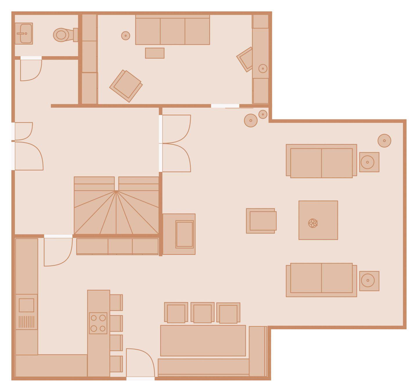 Das MELN HÜS ist großzügig, offen und modern. Auf 225 m² können maximal acht Personen großzügig in vier Schlafzimmern wohnen. Im Erdgeschoss empfängt das große Wohn- und Esszimmer mit Kamin und einer offenen weißen Küche mit Bartresen seine Bewohner. Die Küche ist hochwertig und komplett ausgestattet. Von der Nespresso-Maschine über die Salatschleuder bis zum Käsehobel von Rösle ist alles vorhanden, sodass eine große Familie bekocht und versorgt werden kann. Angrenzend an das Wohnzimmer befindet sich die Bibliothek, ausgestattet mit vielen spannenden Büchern zum Stöbern, Bildbänden zum Träumen und einer großen Sammlung von Gesellschafts- und Kinderspielen.