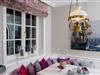 Das exklusive 5-Sterne Ferien Domizil ist ein großzügiger Ort. Auf 125 m² verteilt auf drei Ebenen, bietet es für maximal sechs Personen viele Möglichkeiten, sich zu versammeln, gemeinsam zu essen, ausgiebige Gespräche am langen Esstisch zu führen oder sich einfach nur zurück zu ziehen. Von klarer Hand und mit einer Vorliebe für warme und leuchtende Farben, wurde das Domizil im Winter 2014 neu konzipiert und ausgestattet. Während die Räume des Obergeschosses und des Spitzgiebels mit ihren pastelligen Tönen ein angenehmes und ausgleichendes Wohnklima vermitteln, wirken die warmen Rot- und Violetttöne des Erdgeschosses belebend auf seine Bewohner. Das helle Wohnzimmer mit seinem großen Essplatz und gemütlichen Loungebereich spiegelt den Anspruch zeitgemäßen Wohnens. Warme Rottöne werden hier kombiniert mit Erdfarben und Naturtönen. Im Eingangsbereich, zwischen Küche und Wohnzimmer, findet sich ein weiterer großer Tisch mit umlaufender Sitzbank. Dieser Platz ist bereits avanciert zum Lieblingsplatz der jüngsten Bewohner, denn hier hat man alles im Blick. Die große Terrasse erweitert den Wohnbereich zu den Sonnenplätzen im Garten. Schöne Gartenmöbel laden zum Entspannen und Wohlfühlen im eingewachsenen Garten ein.