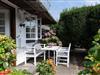 Auf der geschützt liegenden Frühstücks-Terrasse kann man den Tag mit einer Tasse Tee oder frischem Kaffee im Licht der Morgensonne beginnen. Eine zweite nach Westen ausgerichtete und in Naturstein ausgeführte Terrasse öffnet den Wohnbereich zu den Sonnenplätzen im 200 m² großen Garten. Die Terrasse ist ausgestattet mit Gartenmöbeln und einem Strandkorb – ein idealer Platz, um den Tag im warmen Abendlicht mit einen Sundowner in die Nacht zu verabschieden.