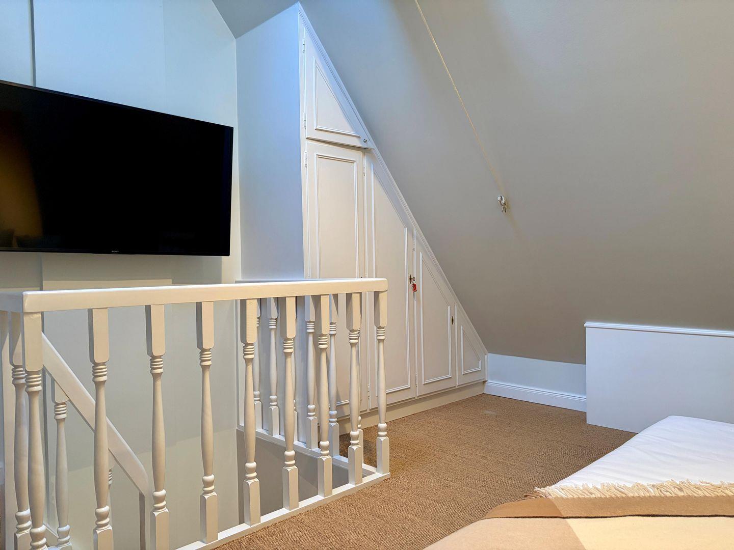 Obergeschoss: 1 Doppelzimmer mit TV; 1 Schlafzimmer mit getrennt stehenden Einzelbetten; 1 Badezimmer mit Duschbadewanne und WC.