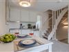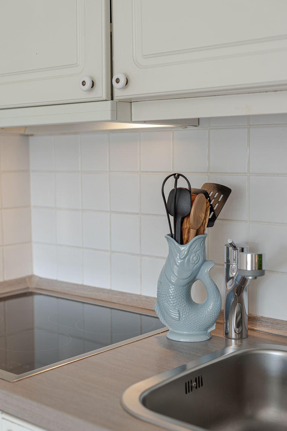 Die offene Küche mit Essbereich fügt sich harmonisch in den Raum ein und ist bestens für kleine Mahlzeiten ausgestattet – auch ohne Backofen oder Mikrowelle finden Sie hier alles, um sich zwischendurch etwas Leckeres zu zaubern.