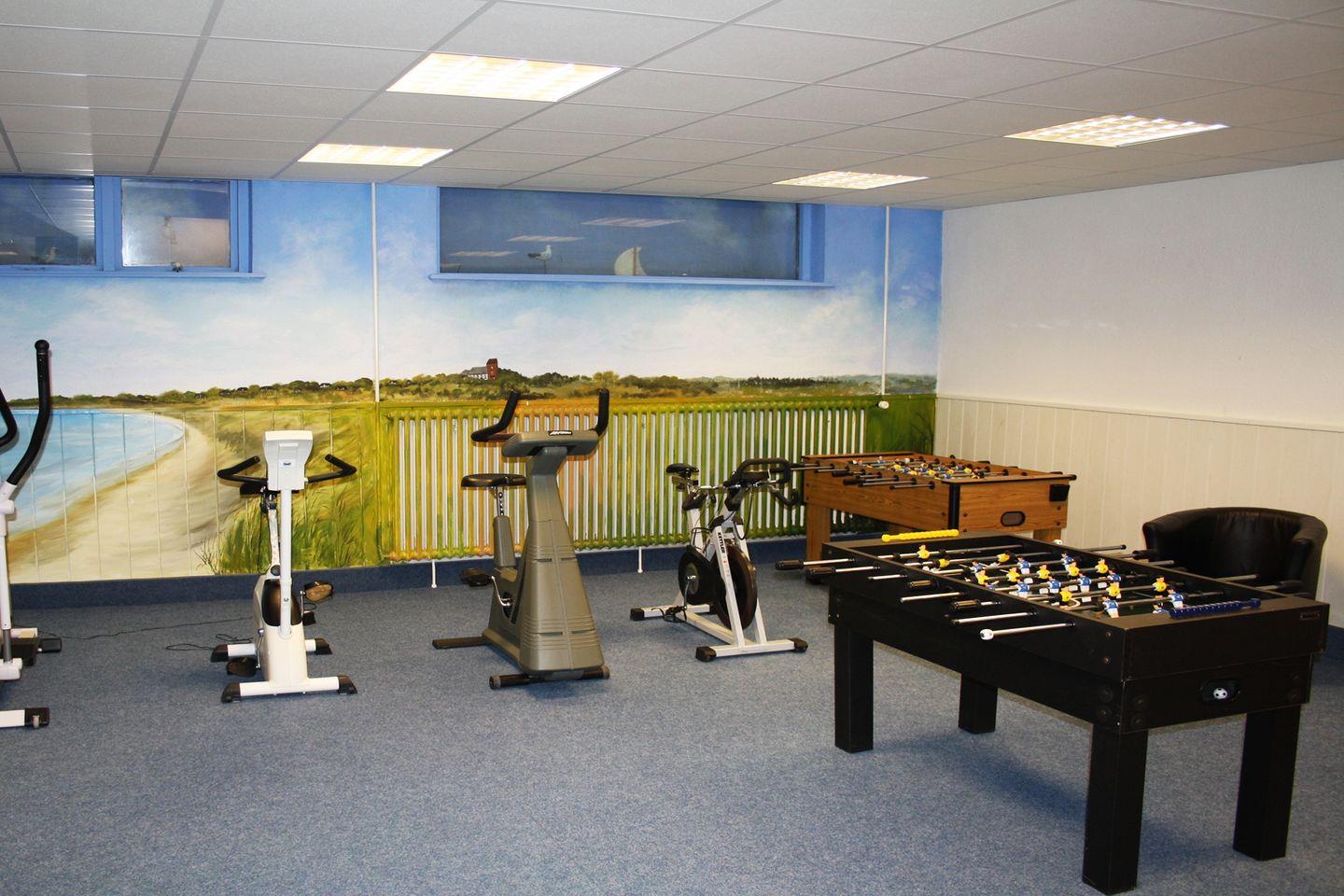 Fitness- und Freizeitraum mit Trainingsmöglichkeiten sowie Unterhaltung wie Tischkicker