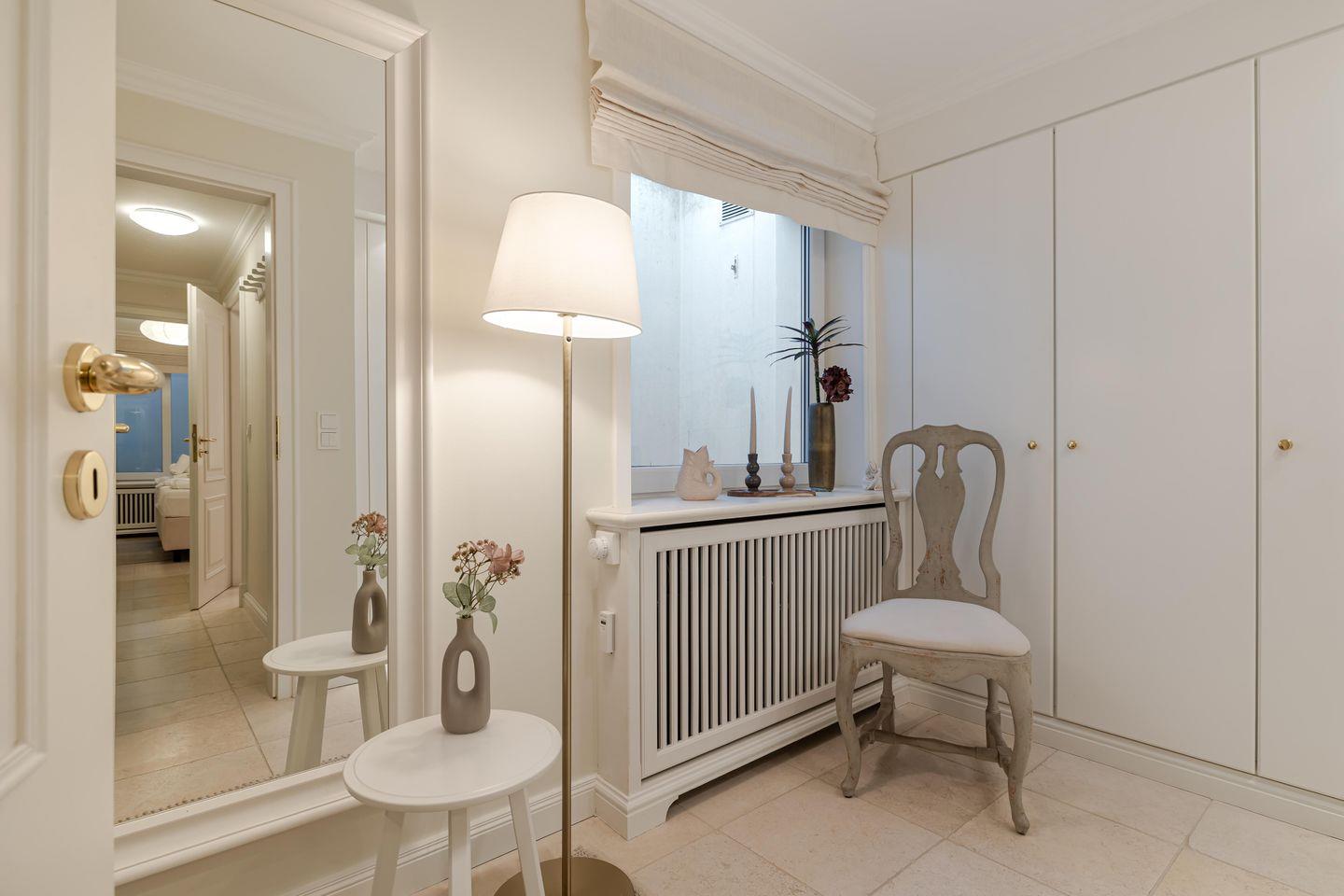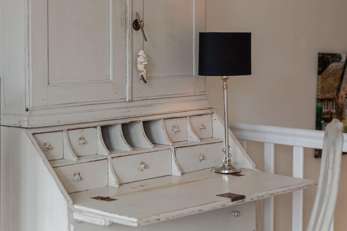 Warum das so ist, wird beim Betreten der Wohnung dann auch ganz schnell klar: ruhige, natürliche Farben und ein schöner Mix aus antiken und neuen Möbeln sorgen für ein lässiges Wohnambiente, das wunderbar zum Stil des original friesischen Reetdachhauses passt.
