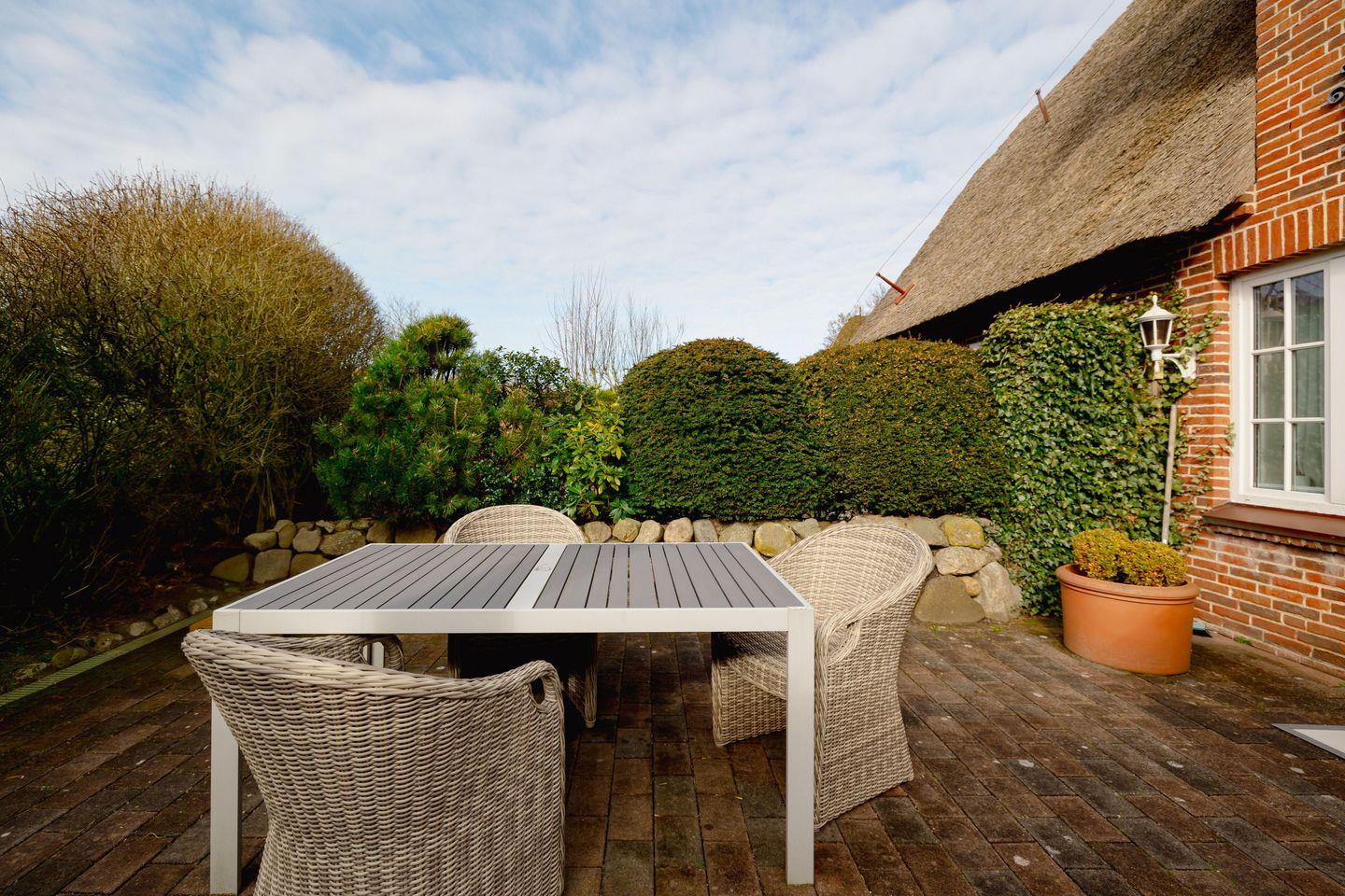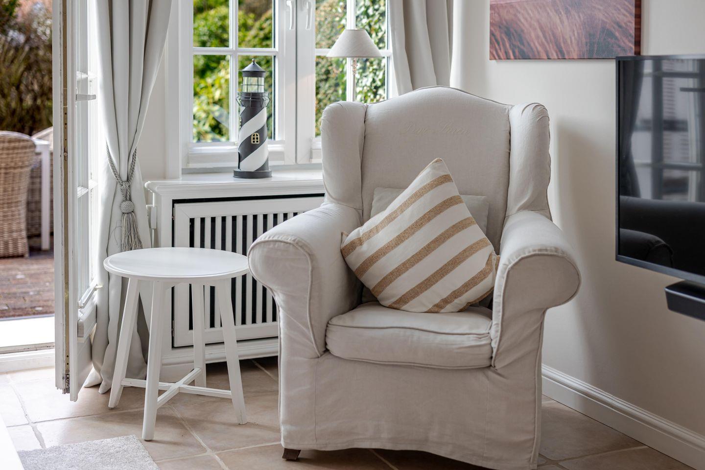 Appartement Lycka bietet eine ruhige, stilvolle Unterkunft im Herzen von Keitum mit grünem Garten und moderner Ausstattung.