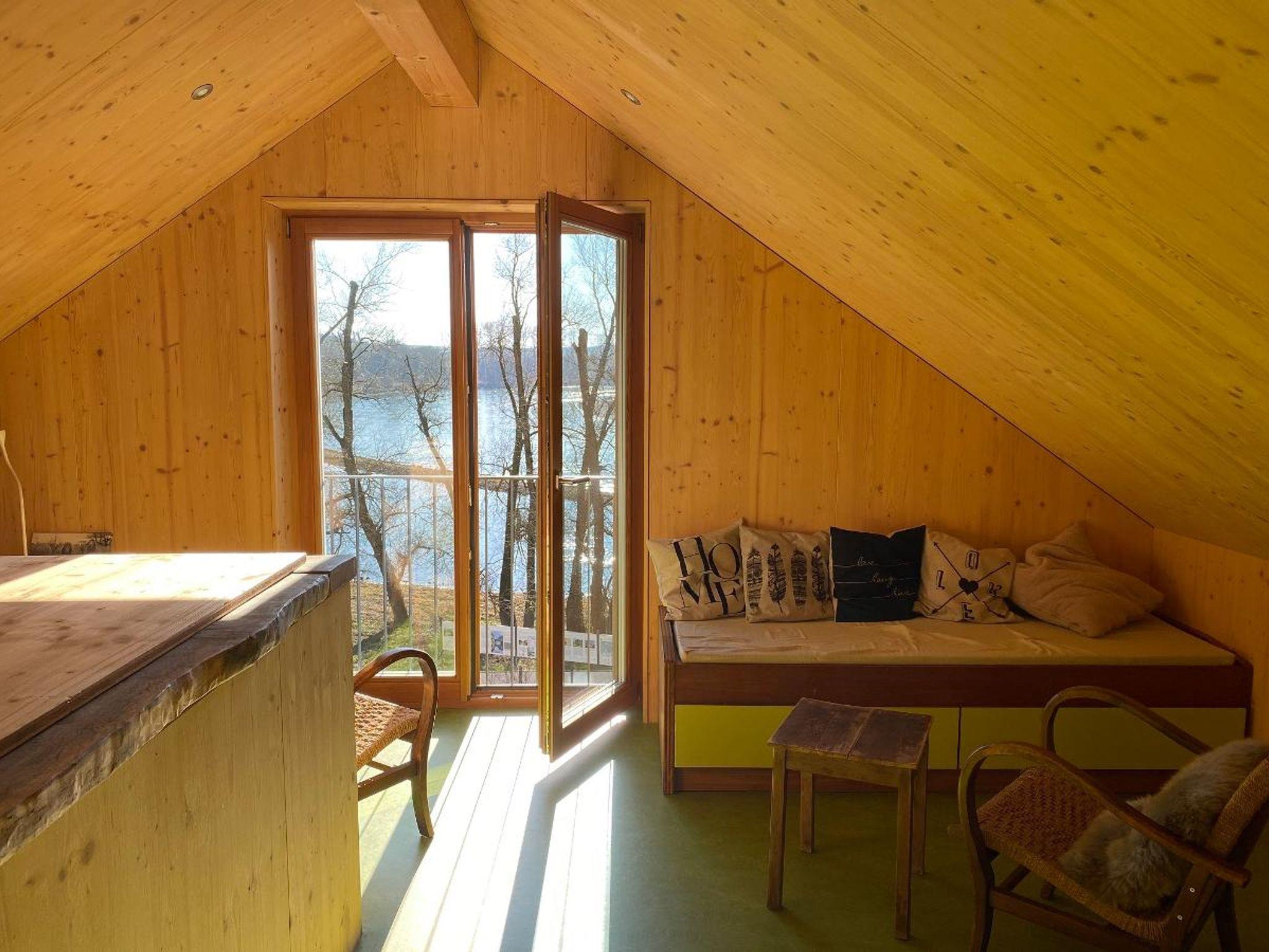 Im Erdgeschoss befinden sich die Küche, der Essbereich und ein WC, im Obergeschoss der Wohnbereich, ein kleines Bad mit Dusche und ein kleines Schlafzimmer mit einem halbhohen Doppelbett. Das offene Dachgeschoss bietet Platz für drei Betten (zwei Einzelbetten und ein Bett mit 1,40m Breite) mit Ablagemöglichkeiten. Aus allen drei Etagen bieten sich wundervolle Ausblicke auf die Donau und ins Grüne.