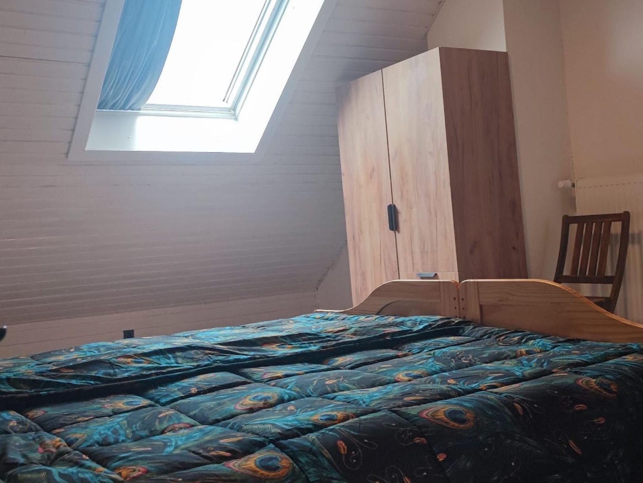 Sie gehen die bequeme Treppe hinauf und gelangen in den 1. Stock, wo sich auf der rechten Seite ein geräumiges Schlafzimmer mit einem Doppelbett von 180 x 200 cm befindet, zu dem auch noch ein zusätzliches Gästebett hinzugefügt werden könnte. Es