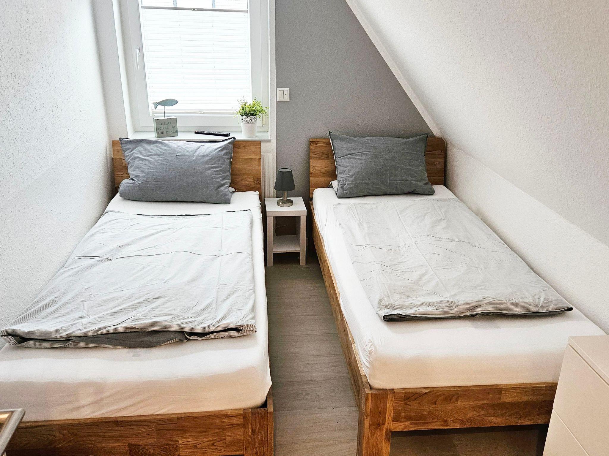 Innen lädt unser Ferienhaus mit einer modernen und umfassenden Ausstattung zum Wohlfühlen ein. Es verfügt über 3 gemütliche Schlafzimmer, eines mit Balkon und eines mit direktem Terrassenzugang. Der Wohnbereich mit einer bequemen Couch und einem Essplatz bietet Raum für gemeinsame Momente, während die Küche mit Cerankochfeld, Backofen, Spülmaschine und weiterem Komfort keine Wünsche offenlässt. Für den Komfort sorgen zusätzlich zwei Badezimmer mit Dusche und ein separates WC im Obergeschoss, sowie ein Gäste-WC im Erdgeschoss. Die Ausstattung wird durch Highspeed-Internet, SAT-TV in jedem Zimmer, eine optionale Kinderausstattung und praktische Fliegengitter an den wichtigsten Fenstern abgerundet.