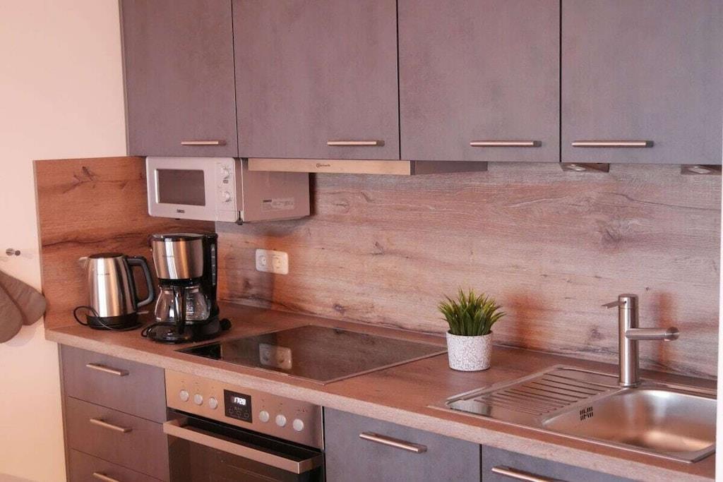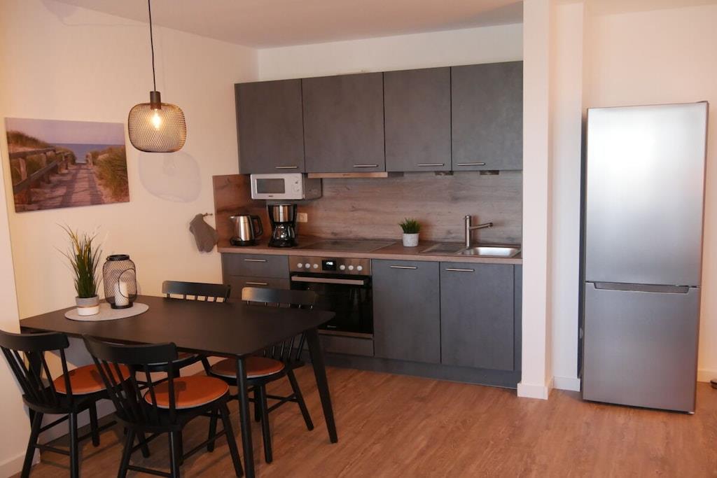 Moderne, gemütliche und sehr gut ausgestattete Ferienwohnung (Komplettrenovierung 2022) mit freiem Seeblick aus dem Wohnzimmer. Im Erdgeschoss mit Terrasse in absolut strandnaher und ruhiger Lage im Seebad Kellenhusen an der Ostsee. Große Fensterfront im Wohnzimmer mit Blick auf die Kellenhusener Strandpromende und die Seebrücke. Integrierte Essecke und Küchenzeile. Großes Schlafzimmer mit Doppelbett und eine ausklappbare Doppelbettcouch im Wohnzimmer für max. 4 Personen. Ein Vollbad mit Duschbadewanne. Ein Parkplatzstellplatz direkt vor dem Haus (insgesamt 12 Einheiten) ist für sie reserviert. Eine gemeinsam nutzbare Waschmaschine und ein Trockner sowie ein Abstellraum für Fahrräder befinden sich im Keller.