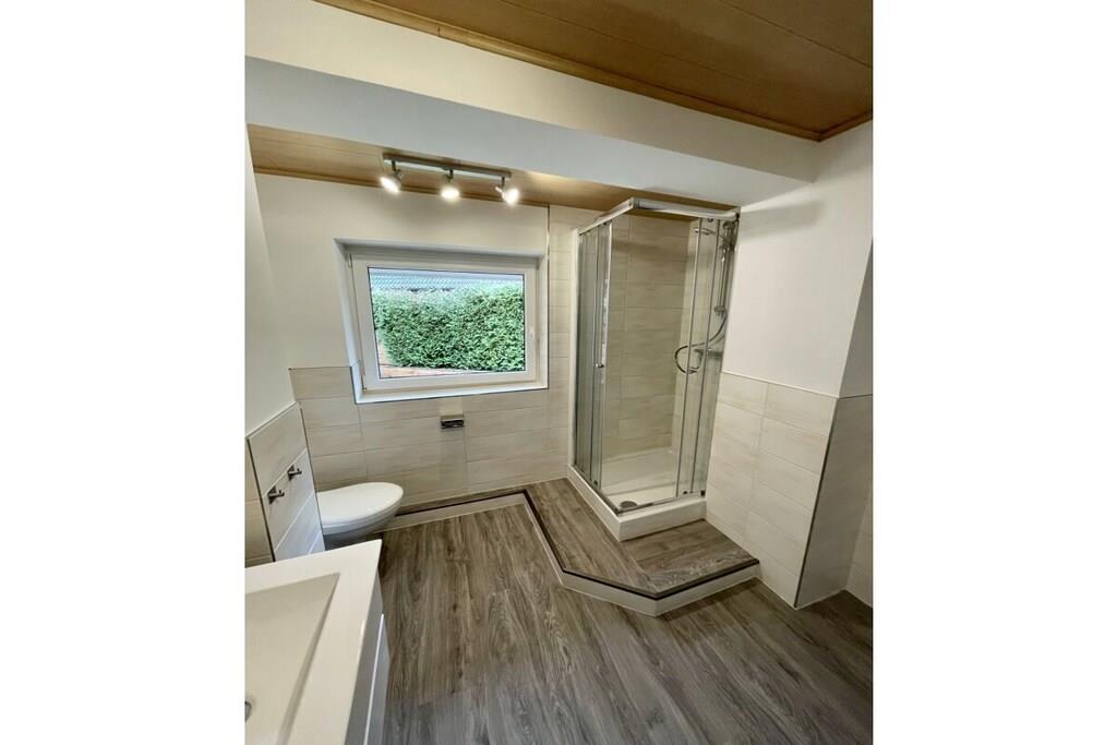 Parterre: (Eingangshalle(), Küche(, Kochnische, Herd, Kochplatte, Wasserkocher, Toaster, Kochherd, Kaffeemaschine, Backofen, Mikrowelle, Spülmaschine, Kühlschrank, Tiefkühlschrank, ), Wohn/Esszimmer(, TV, Esstisch, Stereoanlage), Badezimmer(, Toilette, Badewanne, Waschbecken, Föhn)) In der 1. Etage: (Schlafzimmer(, Doppelbett), Schlafzimmer(, Einzelbett, Einzelbett), Schlafzimmer(, Einzelbett, Einzelbett), Badezimmer(Toilette, Dusche, Waschbecken)) , , Schlafzimmer(, Einzelbett, Einzelbett), Internet, Terrasse(, Grill, Gartenmöbel), Garten(Liegewiese), Parkplatz, Trockenschrank