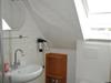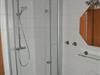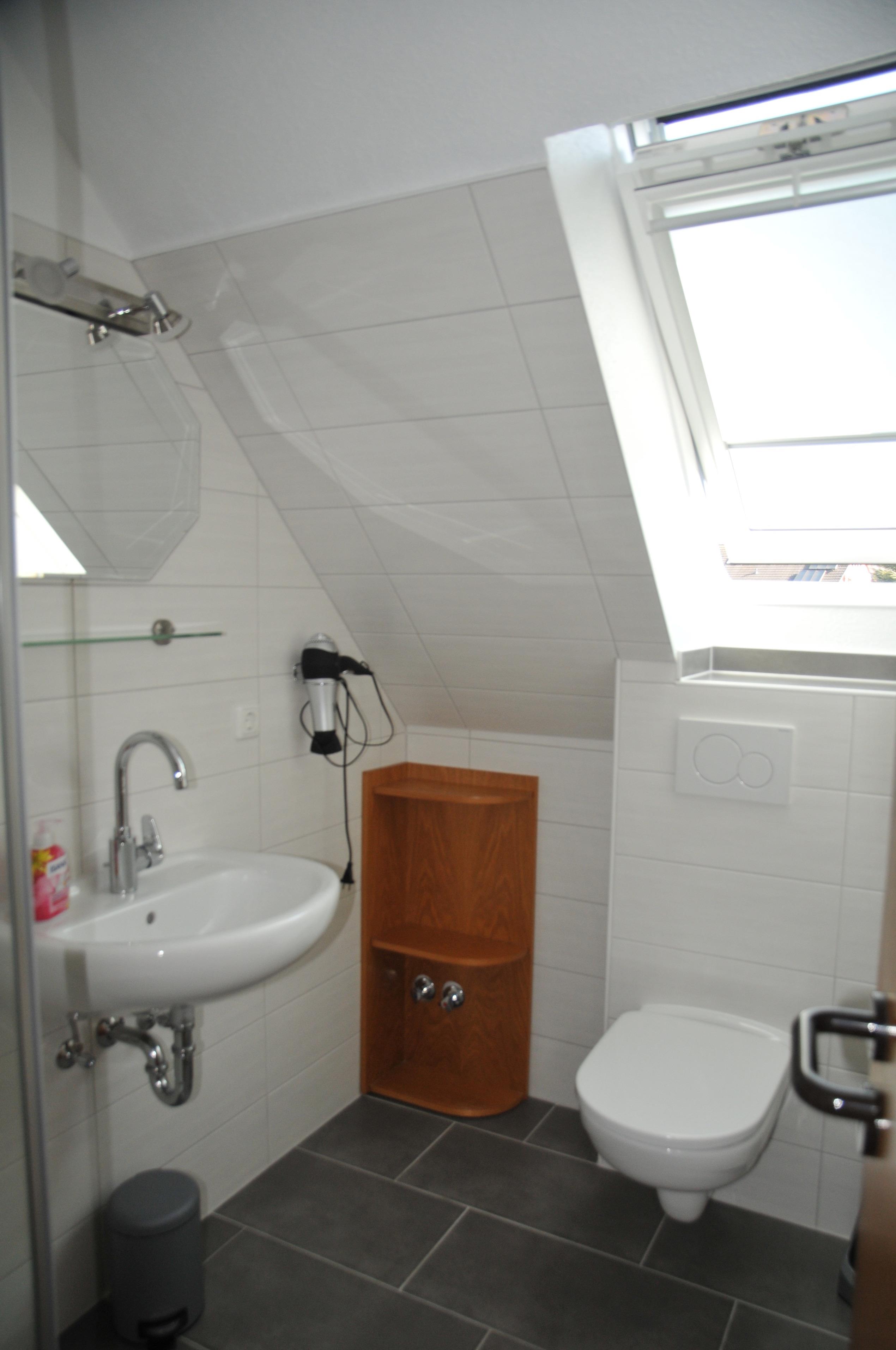 Das Badezimmer ist mit Dusche, Waschtisch und WC ausgestattet.
