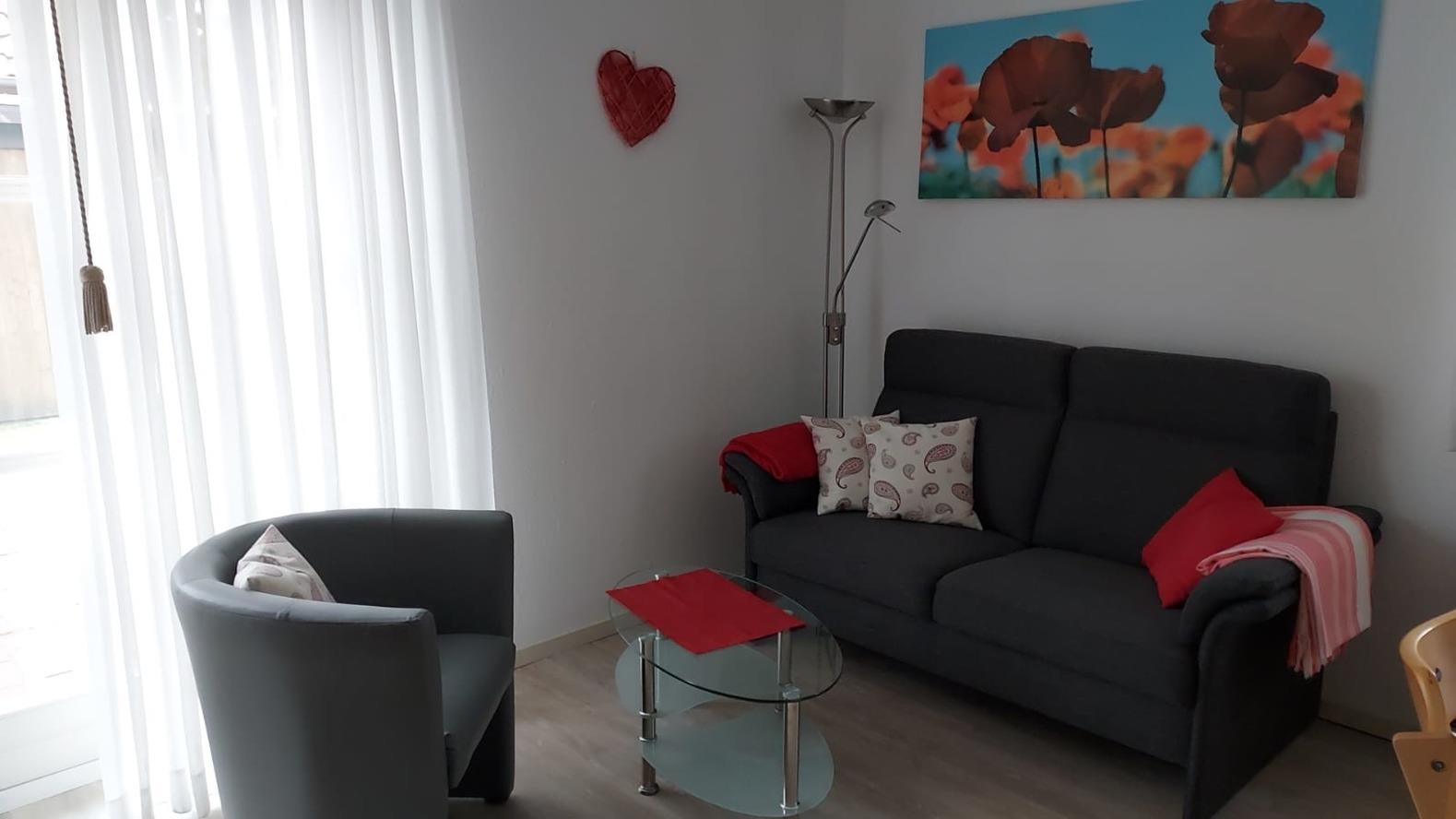 Das helle 2-Raumappartement "Winnie" im Erdgeschoss überzeugt vor allem durch den kombinierten Wohnraum mit vollständig eingerichteter Küchenzeile (Cerankochfeld mit 4 Feldern, Backofen, Spülmaschine, Wasserkocher, Mixer, Kaffeemaschine, Kühlschrank mit Gefrierfach ( 2 Schubläden ) etc.) und einer zur Wohnung gehörenden Terrasse mit Gartenmöbeln.