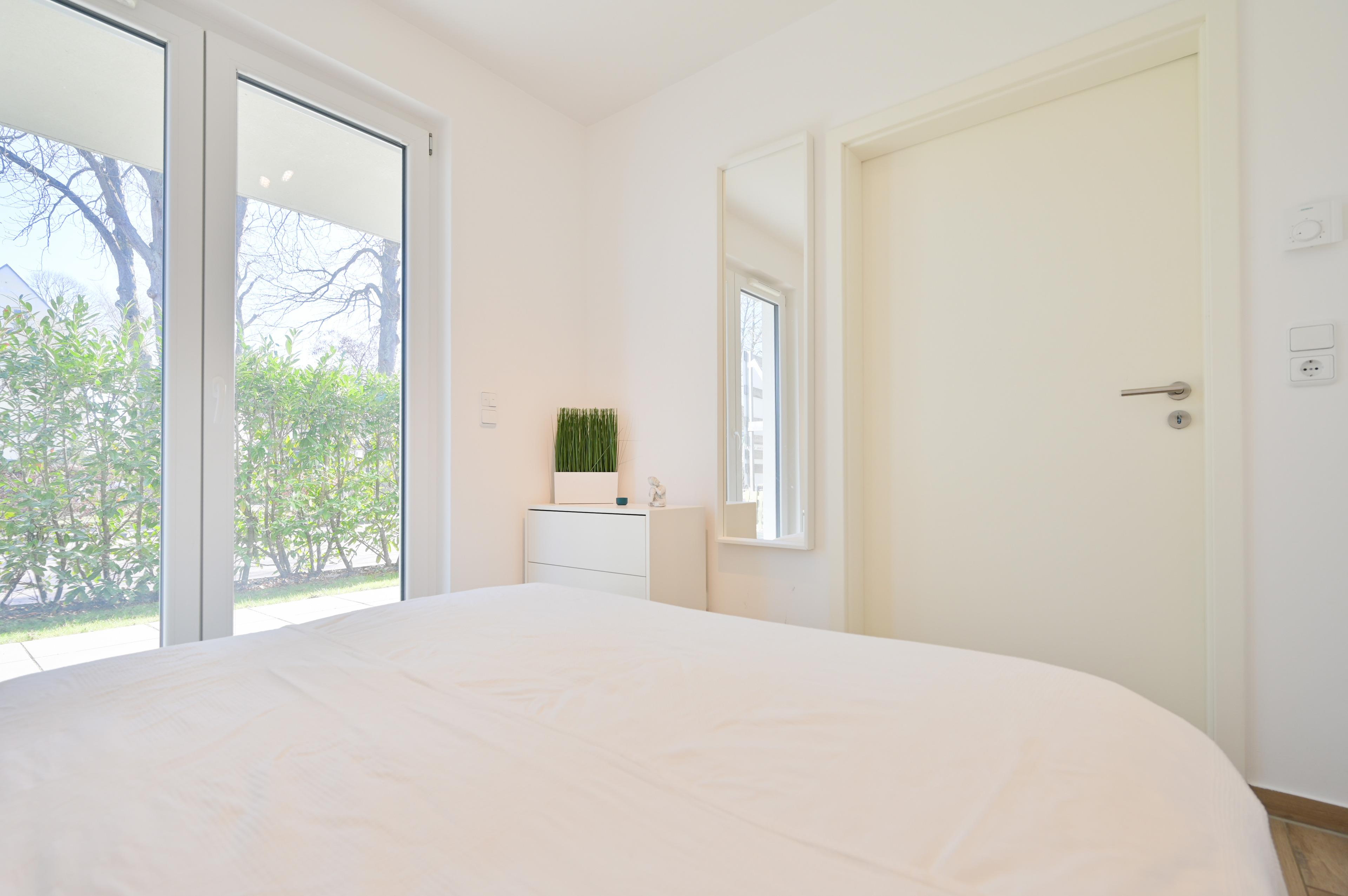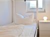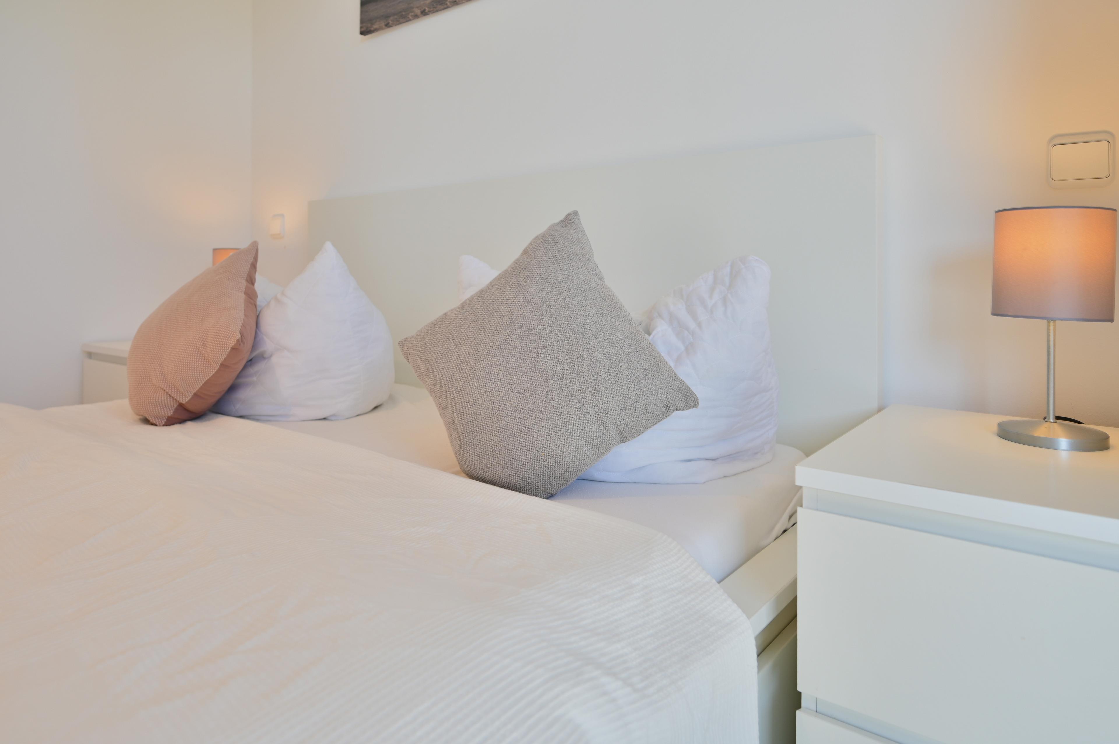 Ein separates Schlafzimmer ist mit Doppelbett (160cm Matratze), zwei Nachttischen mit Leseleuchten eingerichtet. Von hier aus haben Sie Zugang zur zweiten Terrasse.