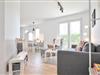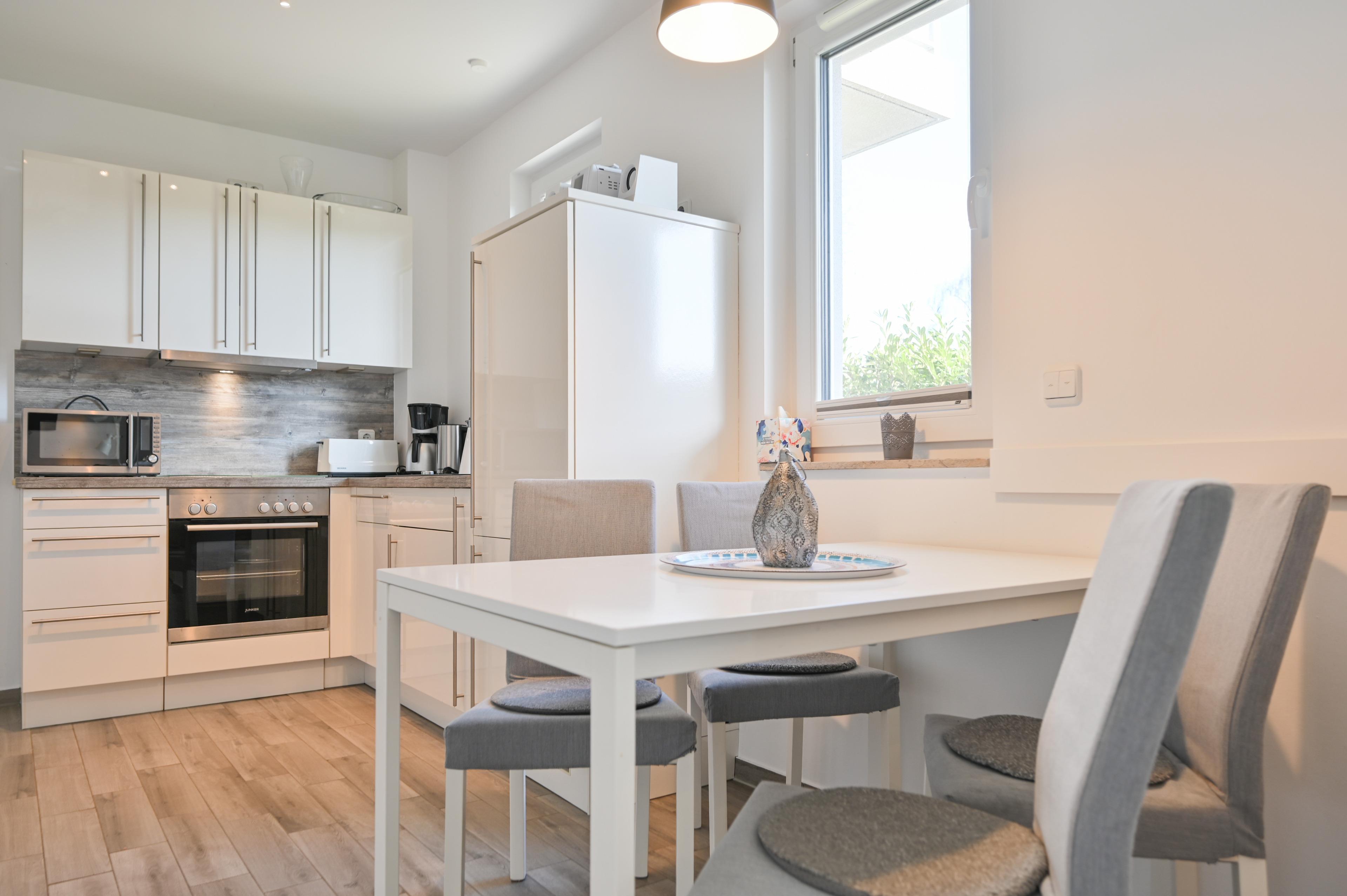 Desweiteren befindet sich ein Esstisch mit 4 Stühlen, und eine moderne Küchenzeile im Wohnbereich.