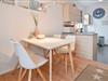 Zentrum der Wohnung ist der kombinierte Koch-Essbereich, welcher durch die L-förmige Anordnung der Küchenzeile optisch die Küche vom Essbereich separiert.