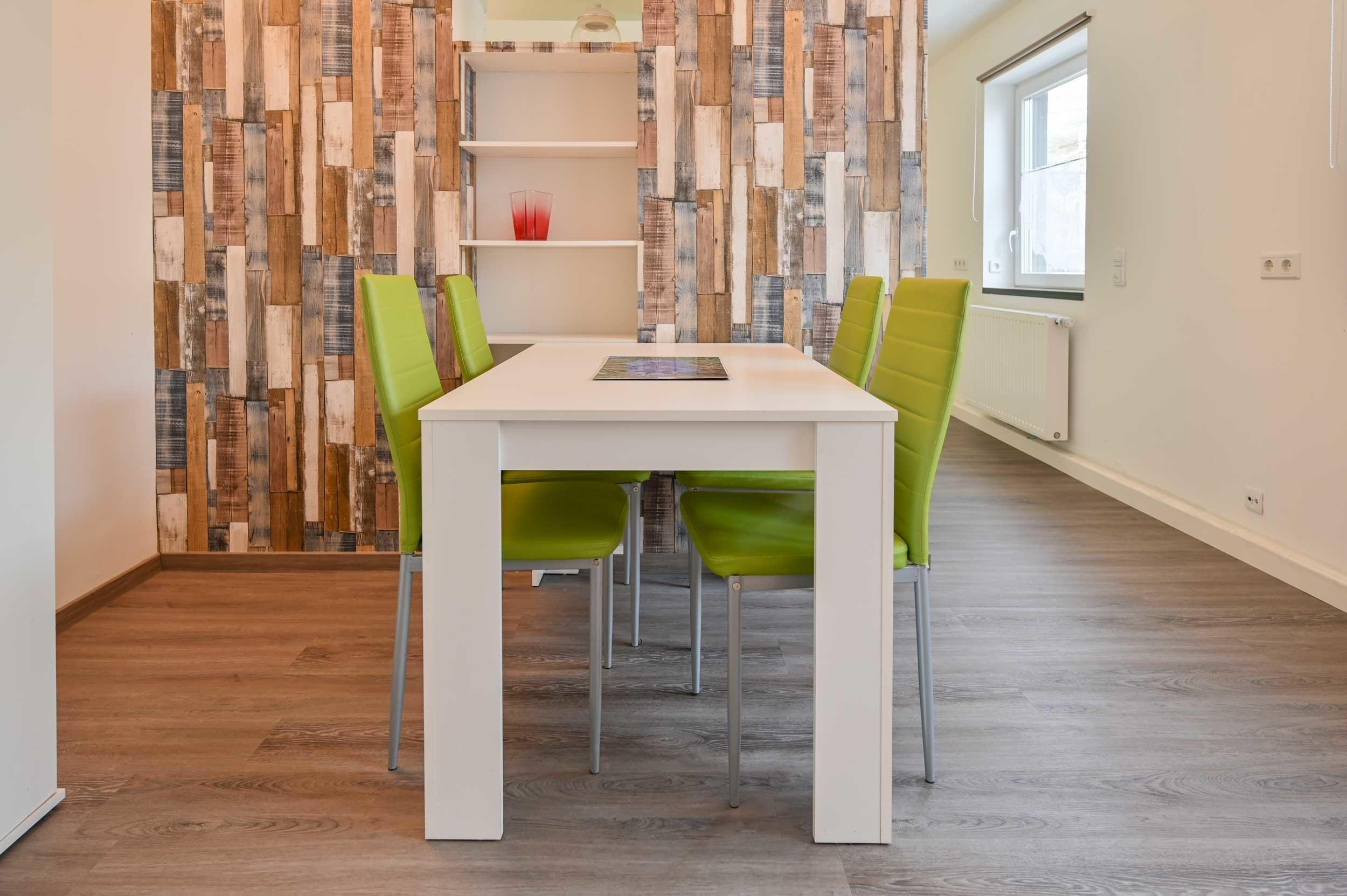 Der Essbereich verfügt über eine kleine Küchenzeile und einen Esstisch mit 4 Stühlen.