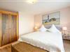 Das Schlafzimmer ist mit einem Doppelbett, Nachttischen mit Leseleuchten und Kleiderschrank eingerichtet.