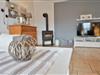 Im Erdgeschoss befindet sich das große Wohnzimmer mit Kaminofen, großer Couchgarnitur, Sessel, Fernseher, Schrank und Zugang zur Sonnenterrasse sowie zum großen Garten. Im Garten können Sie den feststehenden Steingrill nutzen, desweiteren befinden sich hier reichlich Sitzgelegenheiten sowie ein gemütlicher windgeschützter Strandkorb.