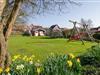 Zu dem Feriendomizil gehört eine Spielwiese mit Trampolin und Schaukel, die auch zum Entspannen und Grillen einlädt.