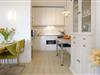 Die Wohnung verfügt außerdem über eine integrierte Küche mit Essecke sowie über ein separates Schlafzimmer mit Doppelbett und Eckkleiderschrank mit Ganzkörperspiegel.